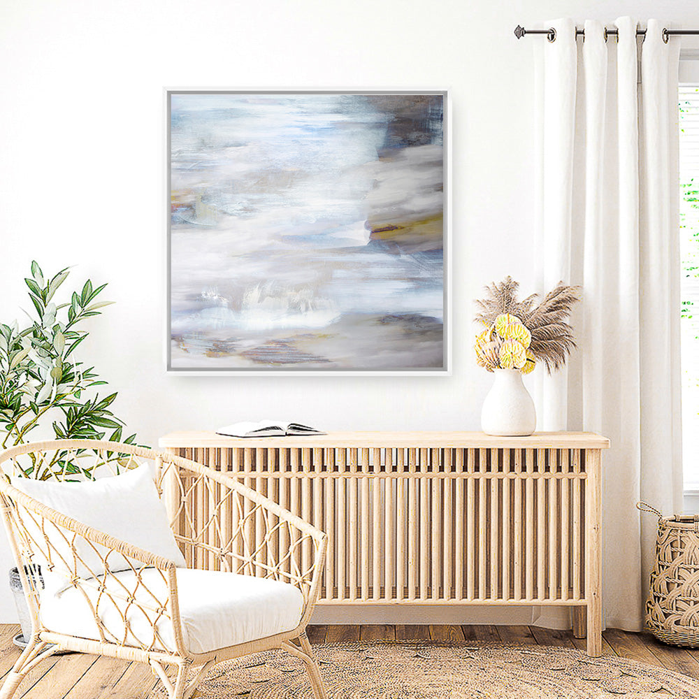 Shop Number Nine 2 (Square) Canvas Print by Hope Bainbridge and update your wall decor at home easily with this calming abstract square artwork from our hand painted canvas print collection.