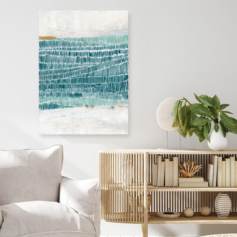 Shop Ocean Park I Canvas Wall Art Print and update your wall decor at home easily with this blue toned abstract themed stretched framed artwork from our hand painted canvas print collection.