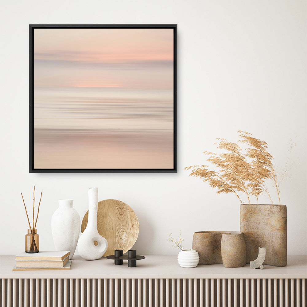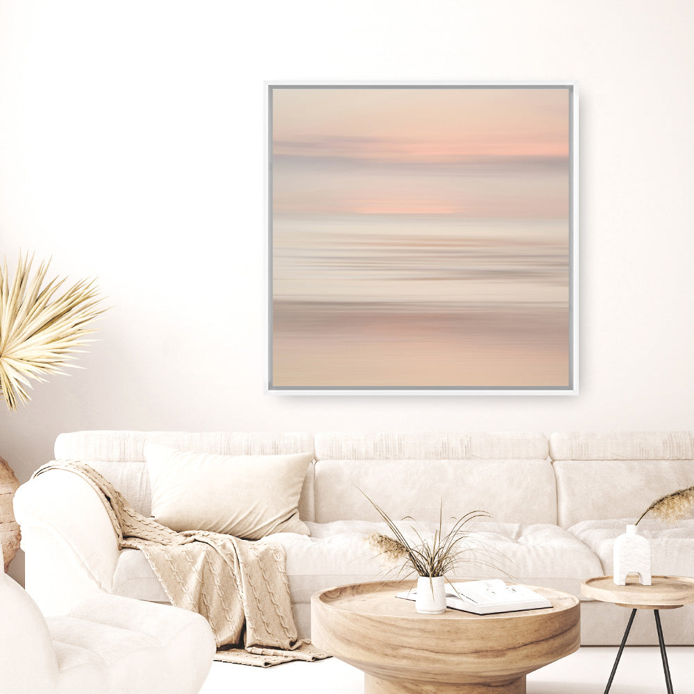 Shop Oceanscape 3 (Square) Canvas Print by Carina Okula and update your wall decor at home easily with this sunset coastal ocean square artwork from our hand painted canvas print collection.