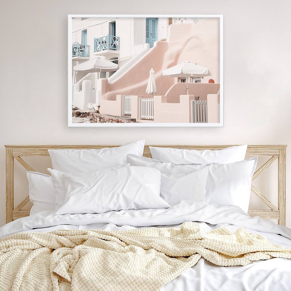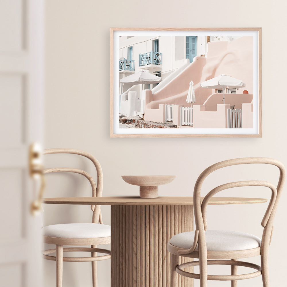 Shop Oia Rose Pink Villa I Photo Wall Art Print by The Print Emporium