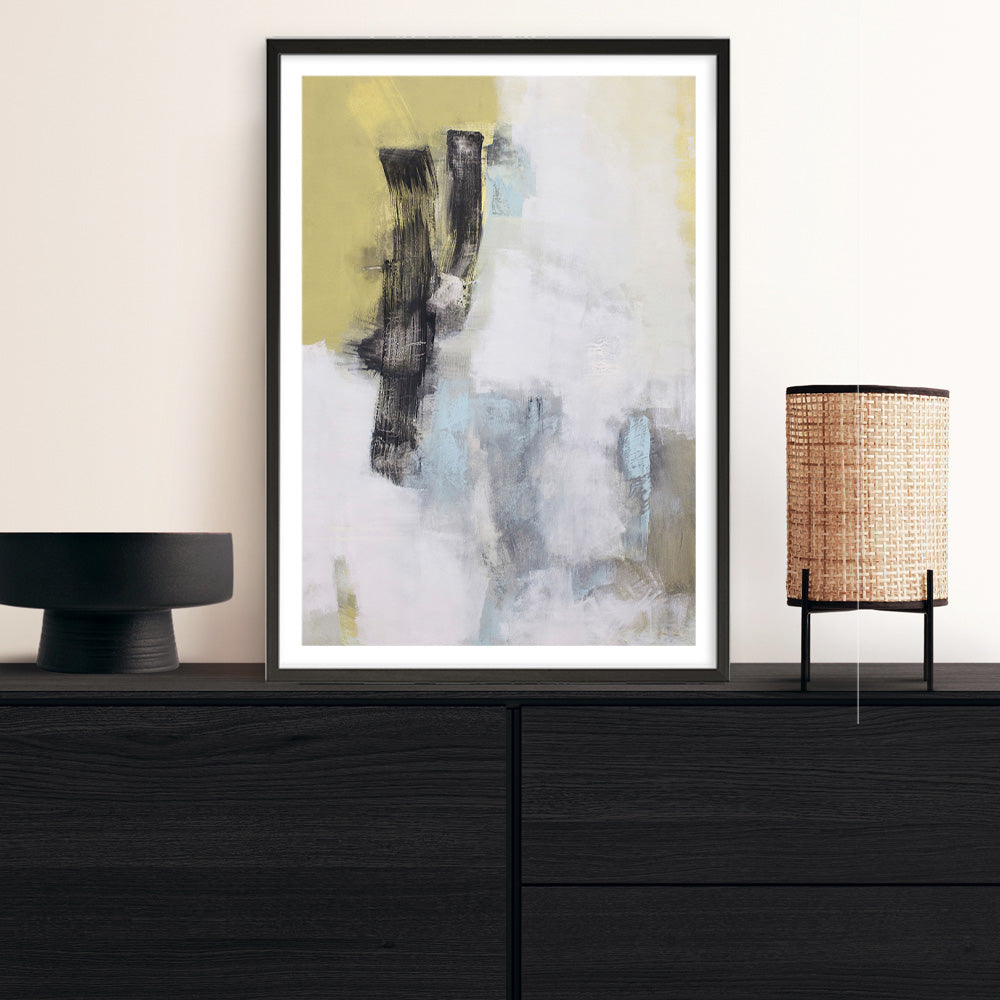 Shop Only To Disappear Art Print by Megan Chapman and update your wall decor at home easily with this yellow and black abstract artwork from our hand painted print collection.