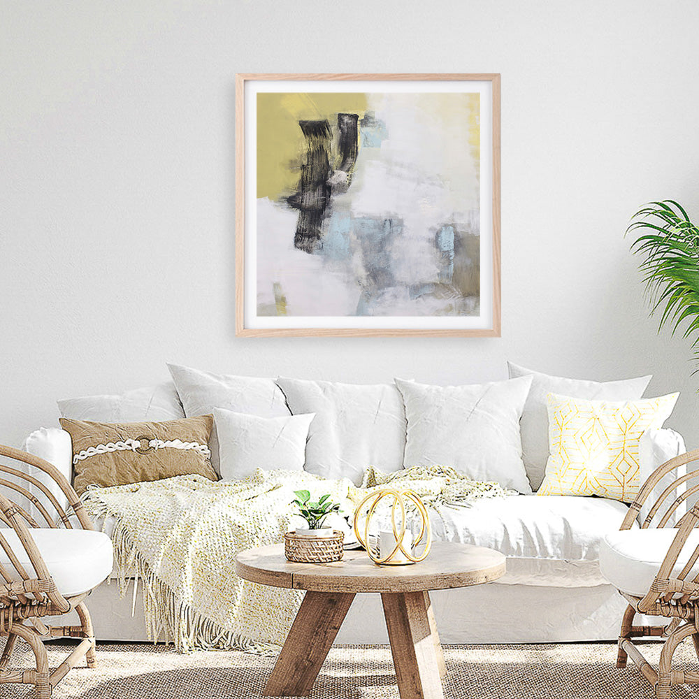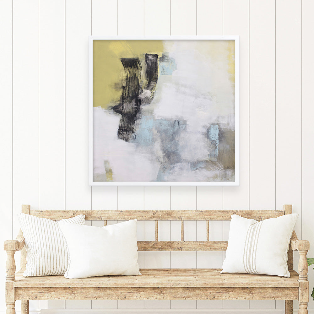 Shop Only To Disappear (Square) Art Print by Megan Chapman and update your wall decor at home easily with this yellow and black abstract square artwork from our hand painted print collection.