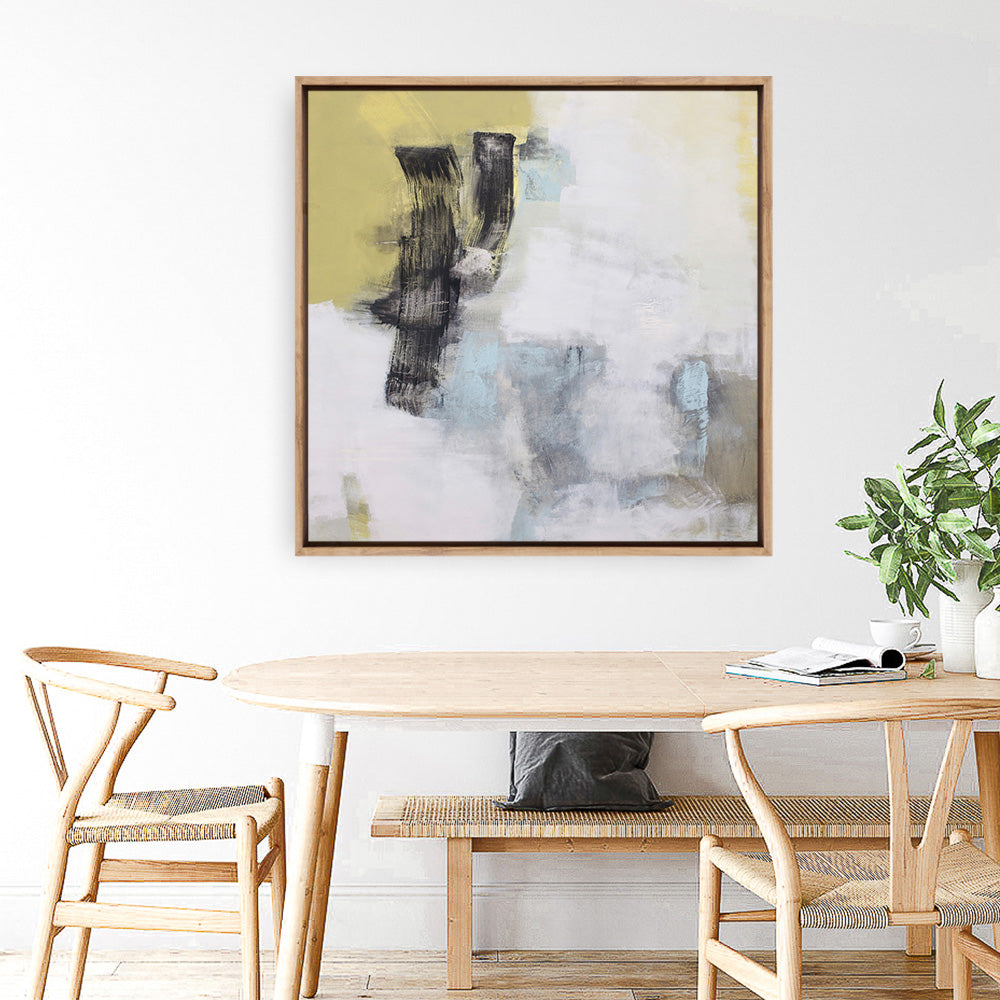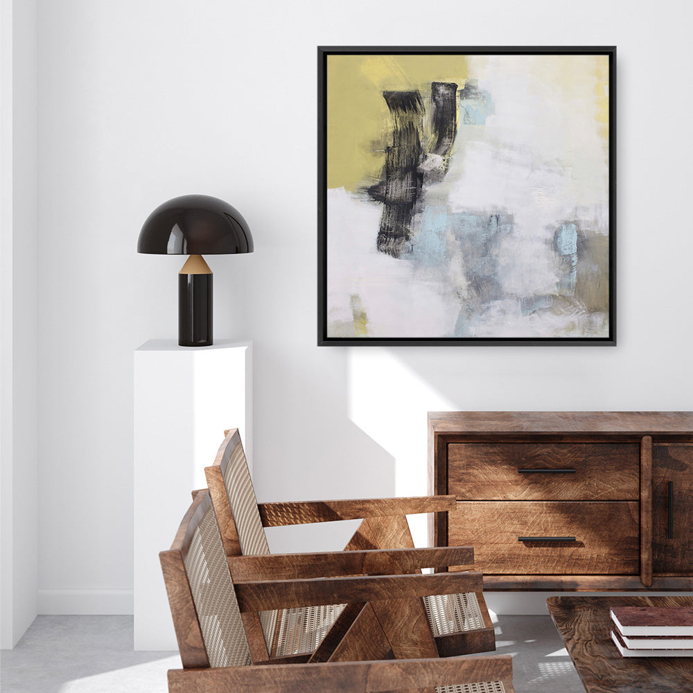 Shop Only To Disappear (Square) Canvas Print by Megan Chapman and update your wall decor at home easily with this yellow and black abstract square artwork from our hand painted canvas print collection.