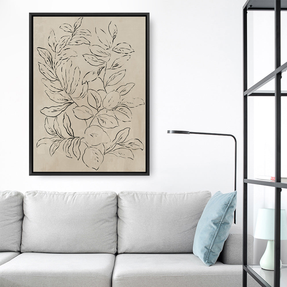 Shop Outlined Leaves I Canvas Wall Art Print by Asia Jensen and update your wall decor at home easily with this brown toned botanical themed stretched framed artwork from our hand painted canvas print collection.