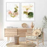 Shop Palette of Spring II Canvas Wall Art Print by The Print Emporium and update your wall decor at home easily with this pink and green abstract themed framed canvas artwork piece from our hand painted prints collection.
