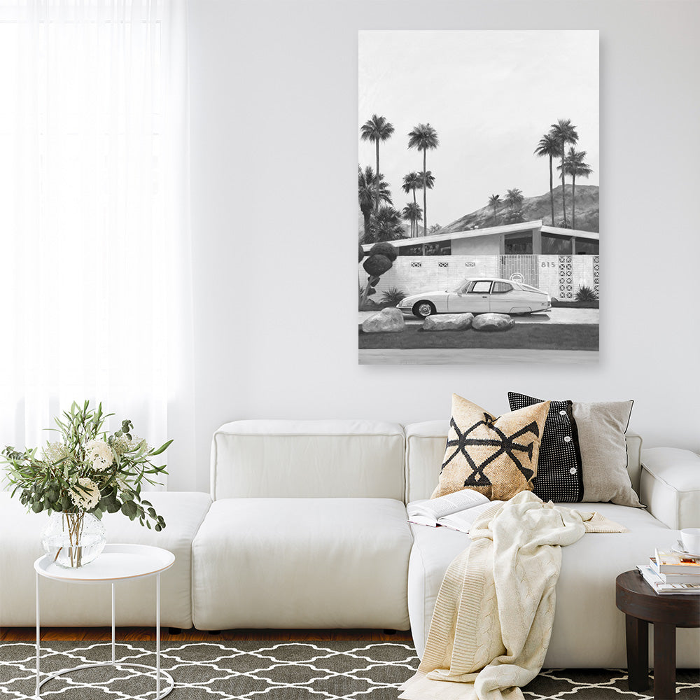 Shop Palm Springs Doorway 2 B&W Canvas Print by The Print Emporium and update your wall decor at home easily with this artwork from our hand painted print collection.