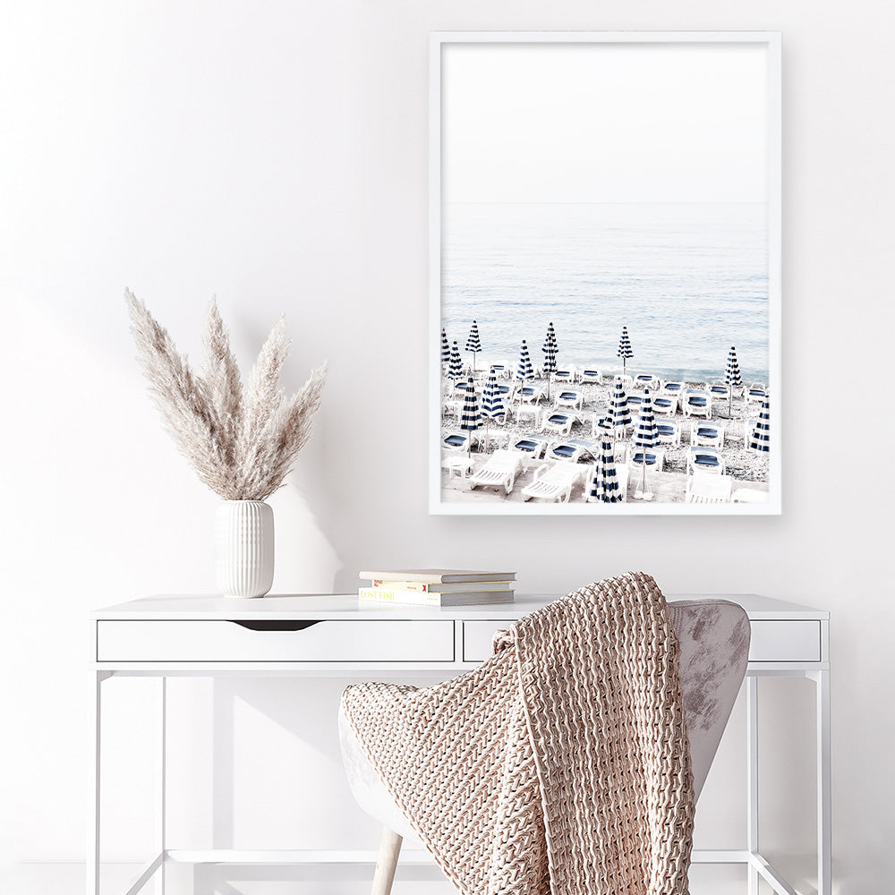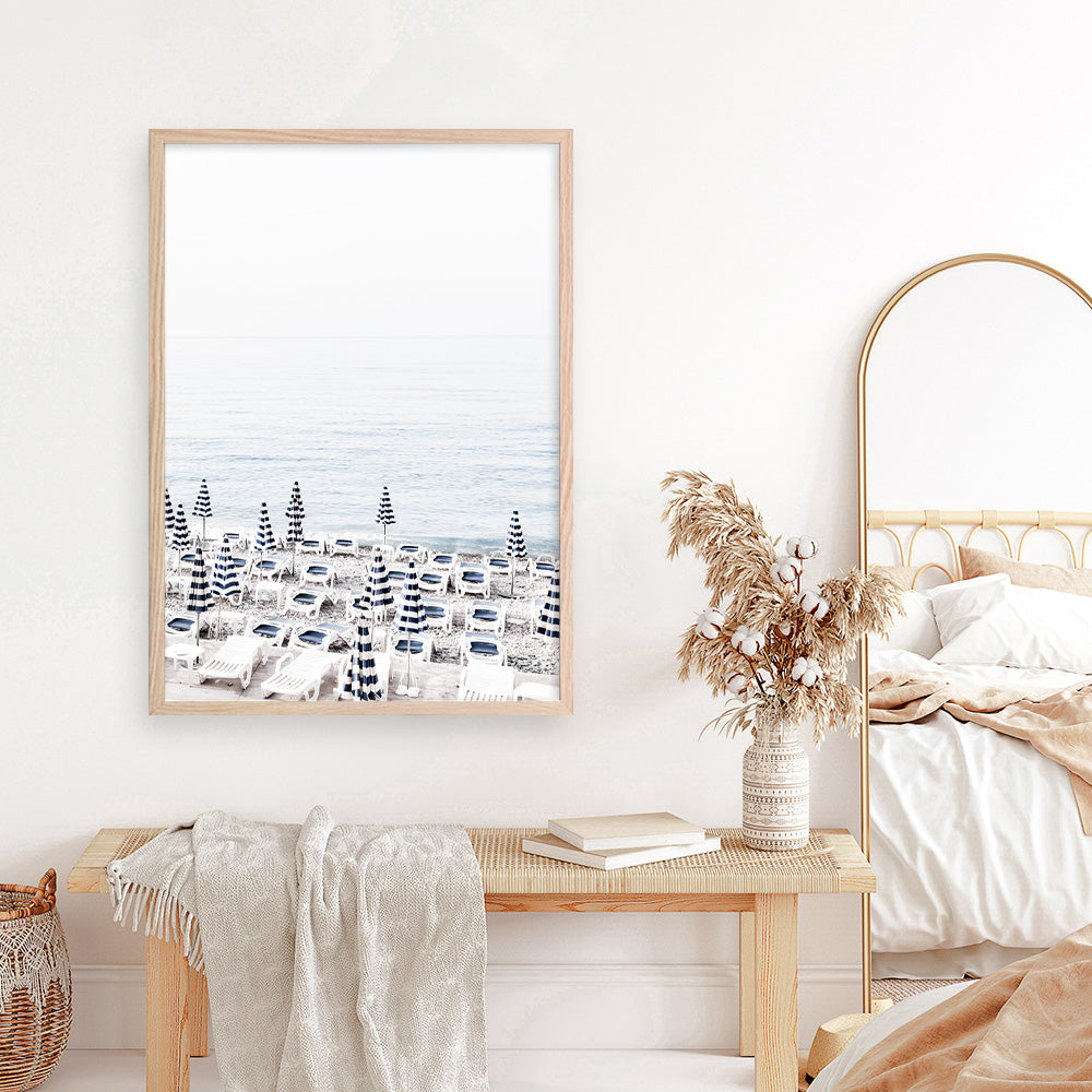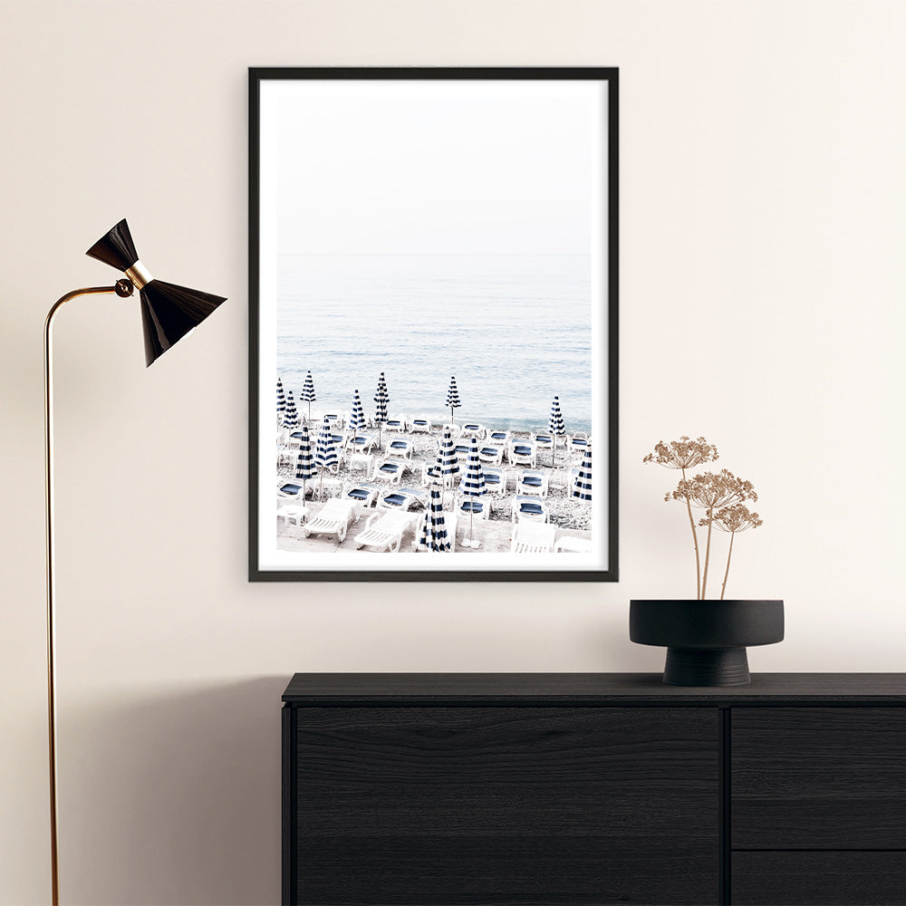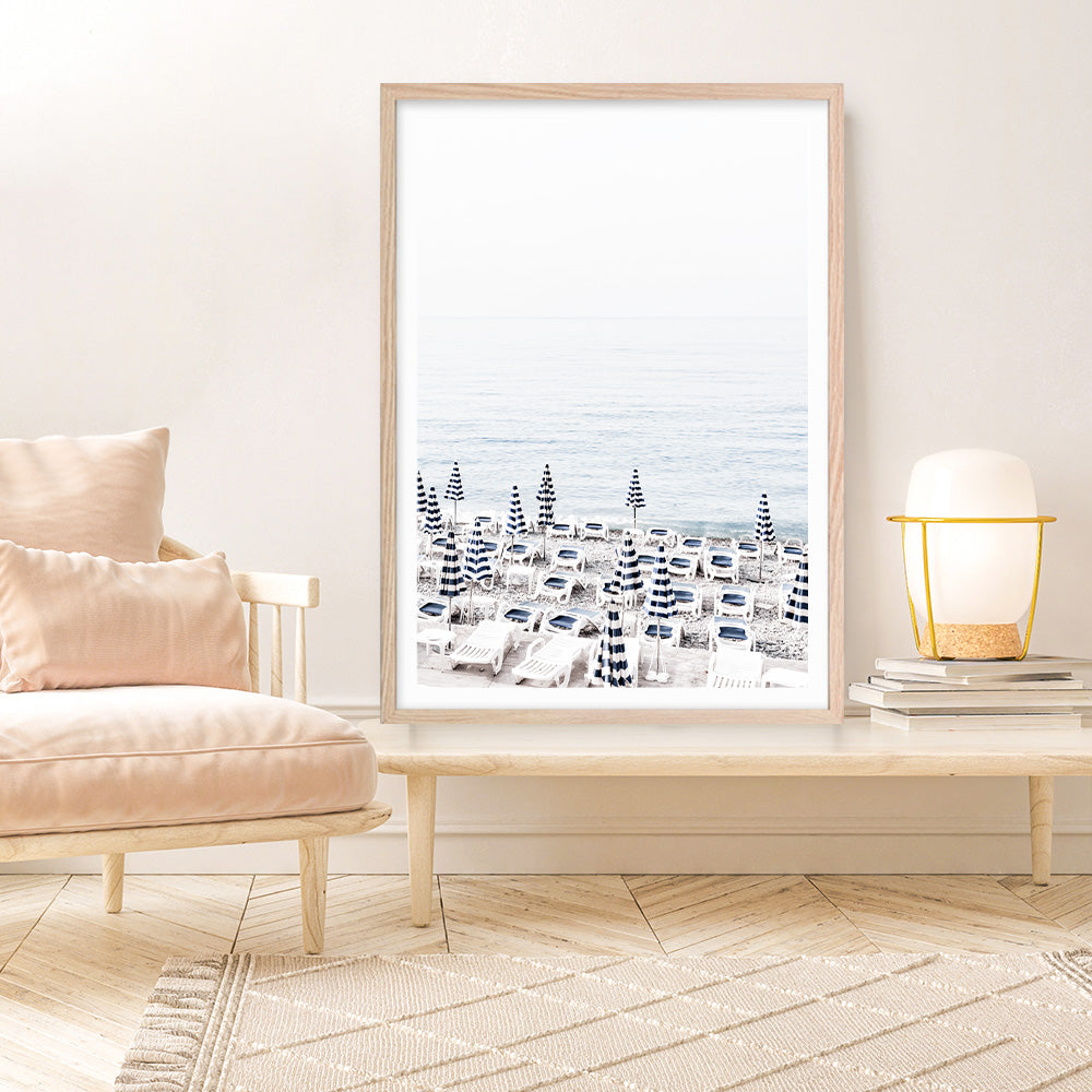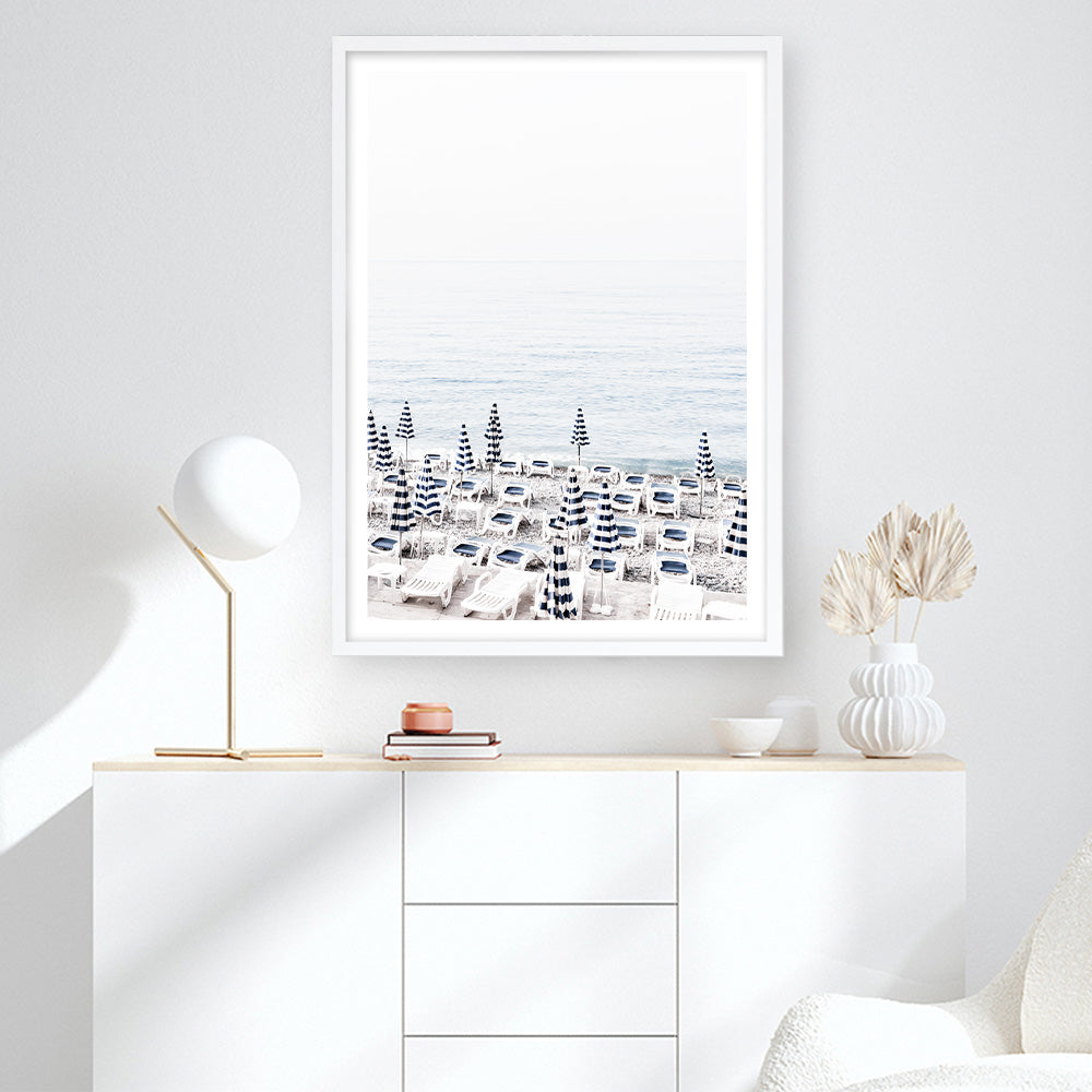 and update your wall decor at home easily with this blue and white beach umbrella coastal themed artwork print from our collection.
