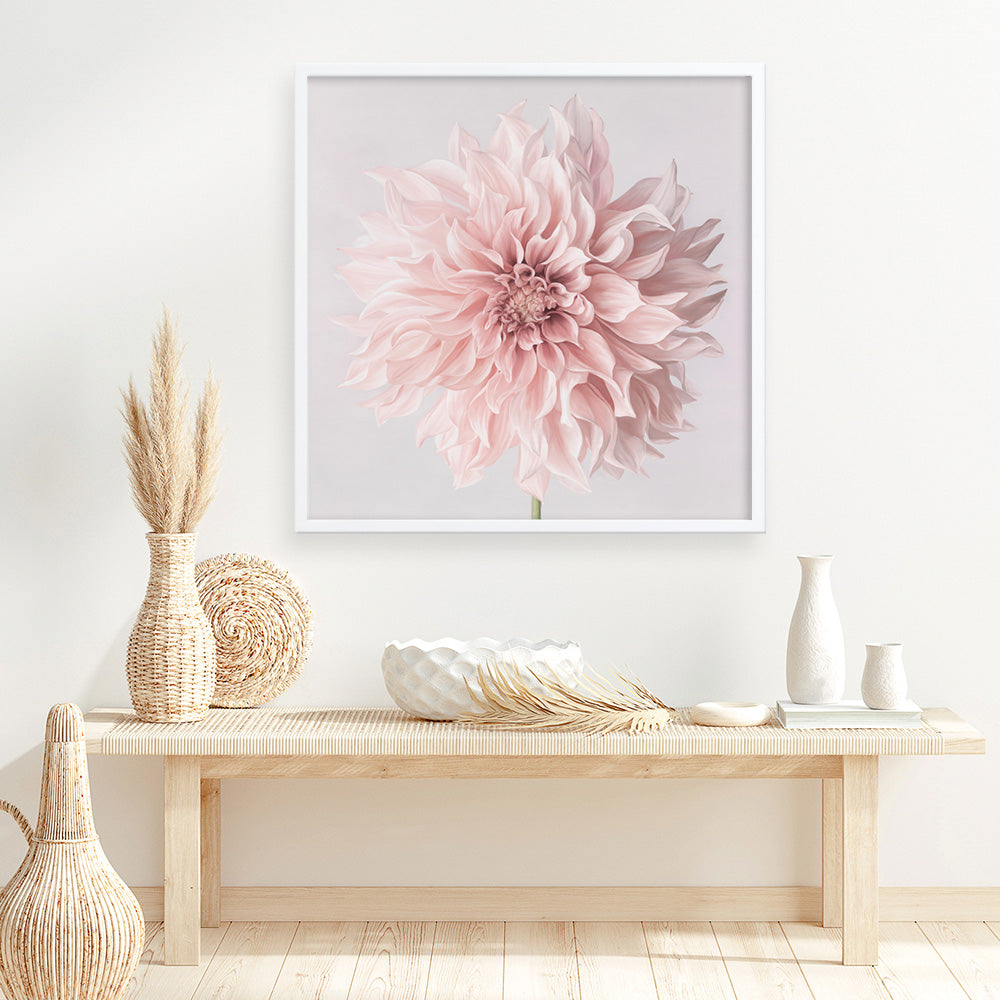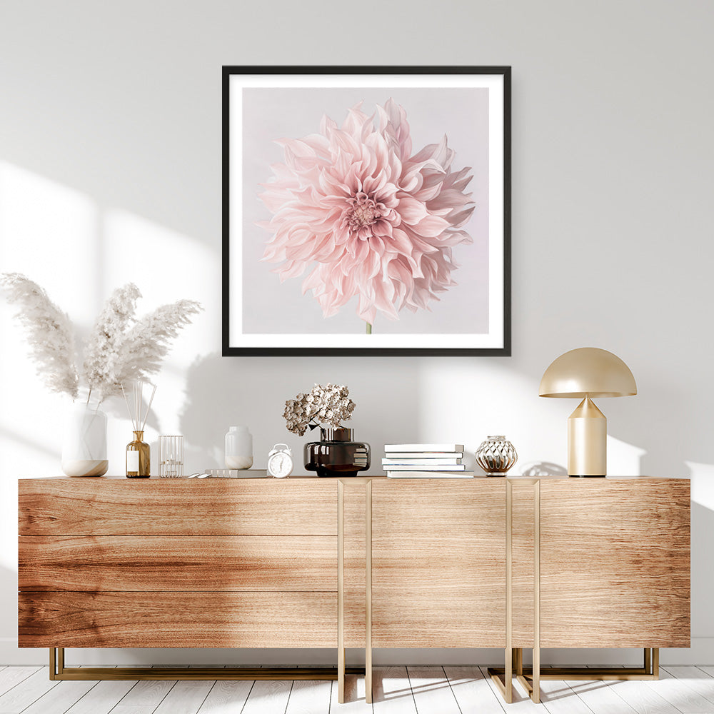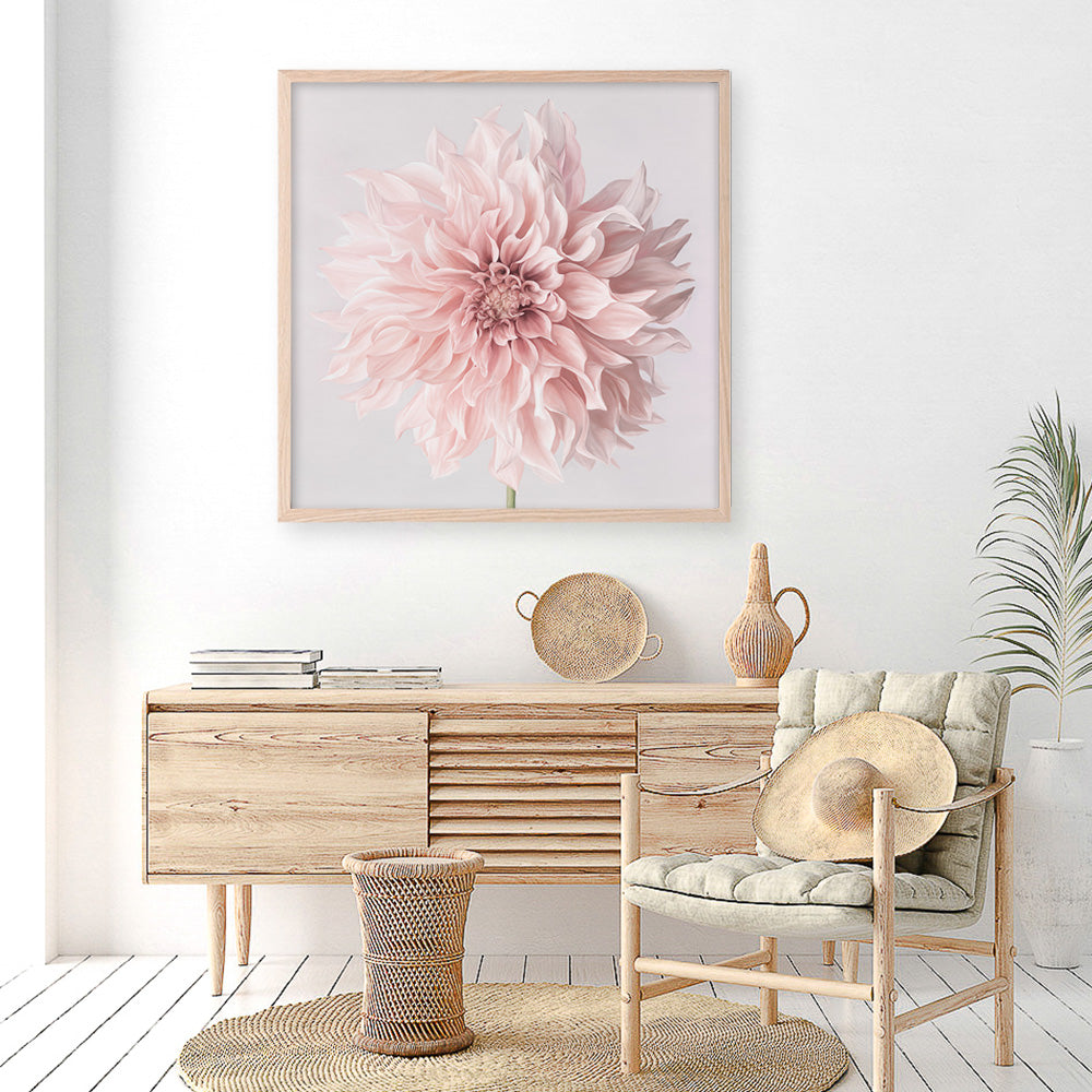 Shop Pastel Pink Dahlia Flower (Square) Art Print by The Print Emporium and update your wall decor at home easily with this artwork print from our collection.