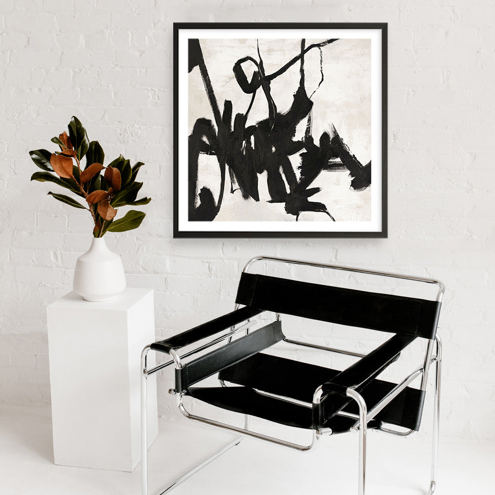 Shop Playblack 1 (Square) Art Print by Design Fabrikken and update your wall decor at home easily with this contemporary abstract square artwork from our hand painted print collection.