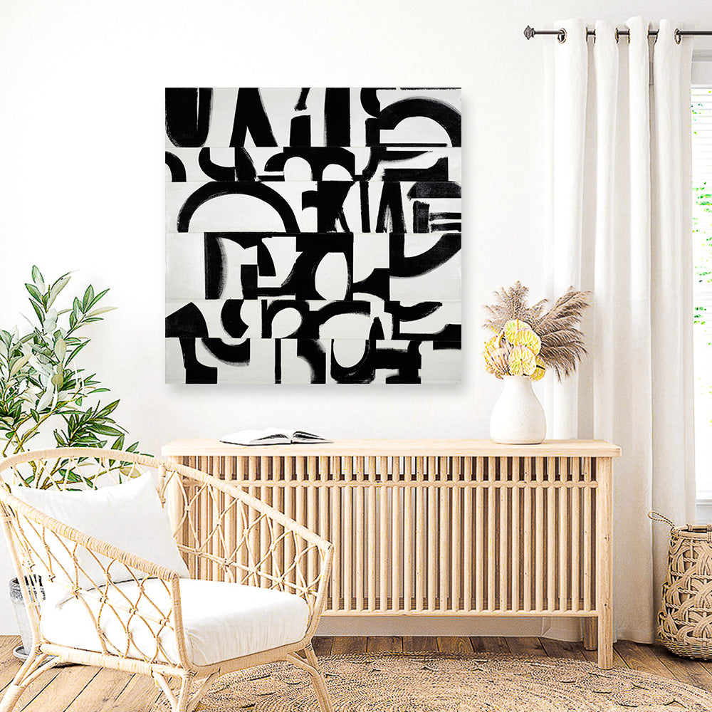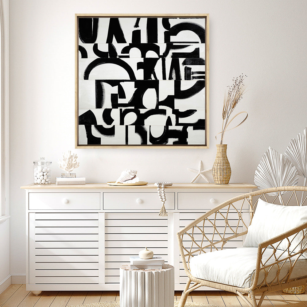 Shop Prosperous Elements (Square) Canvas Print by Randy Hibberd and update your wall decor at home easily with this black and white toned abstract themed from our hand painted canvas print collection.