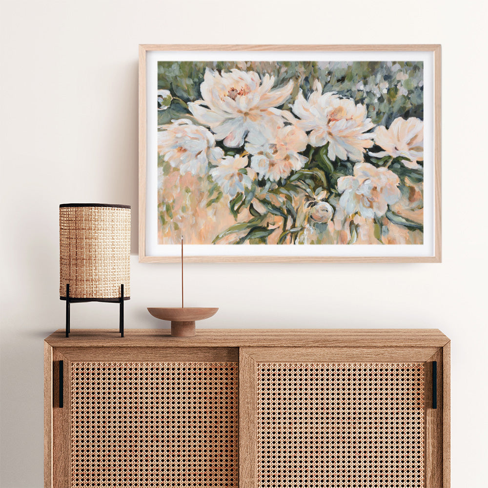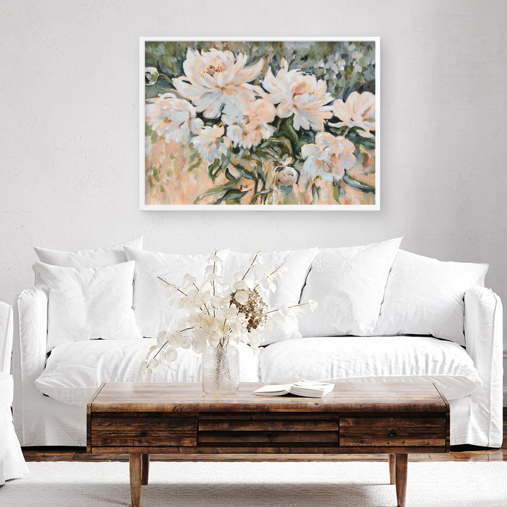 Shop Pure Elegance Art Print by Katrina Pete and update your wall decor at home easily with this peach toned floral artwork from our abstract hand painted print collection.