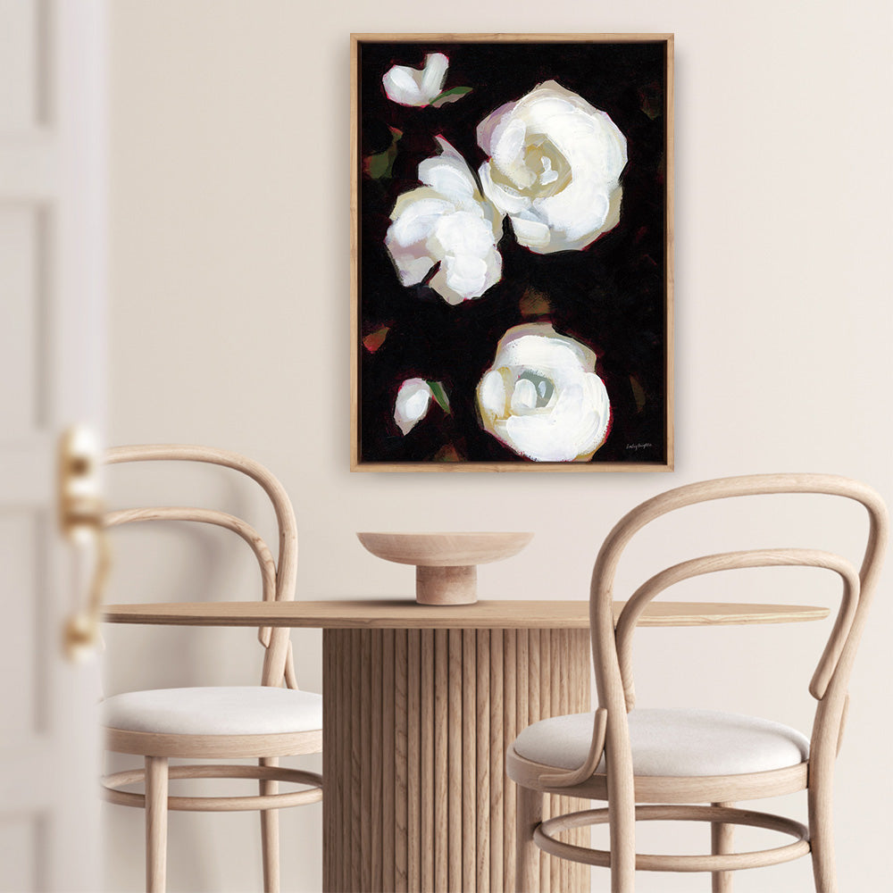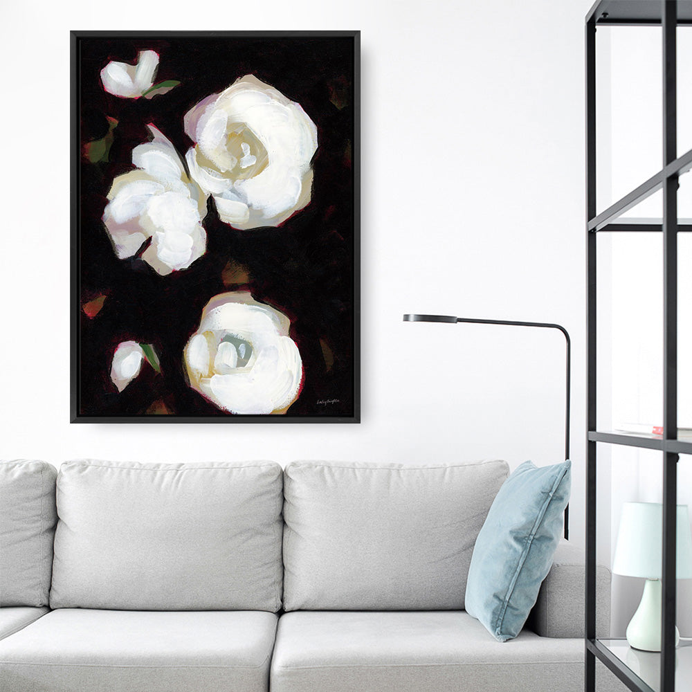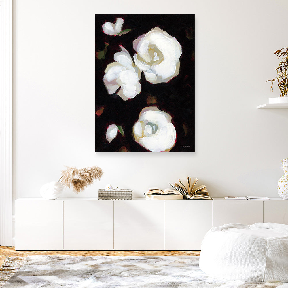 Shop Queen of Hearts IICanvas Print by Haley Knightenand update your wall decor at home easily with this white blossoms on black artwork from our abstract hand painted print collection.