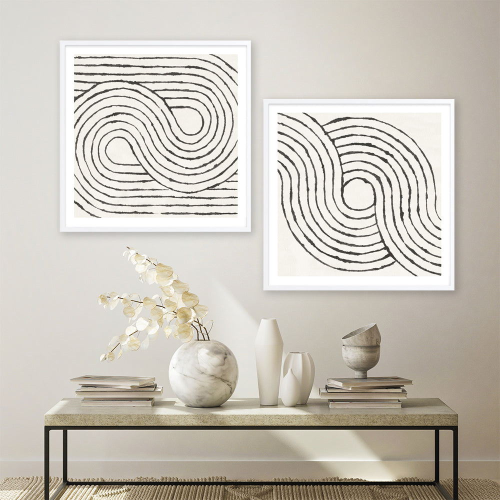 Shop Rainbow Road I BW(Square) Art Print by Moira Hershey and update your wall decor at home easily with this black and white geometric abstract themed artwork print from our hand painted prints collection.