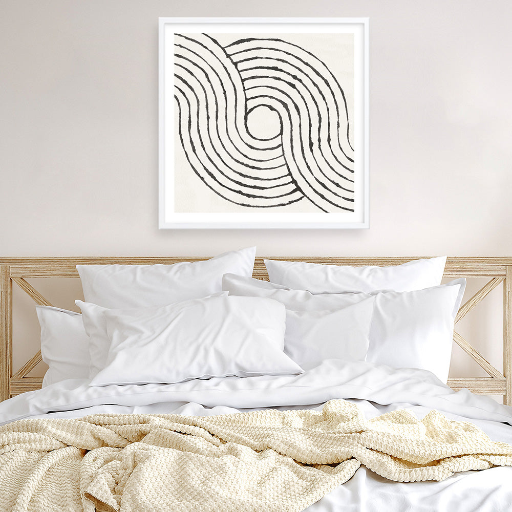 Shop Rainbow Road II BW(Square) Art Print by Moira Hershey and update your wall decor at home easily with this black and white geometric abstract themed artwork print from our hand painted prints collection.