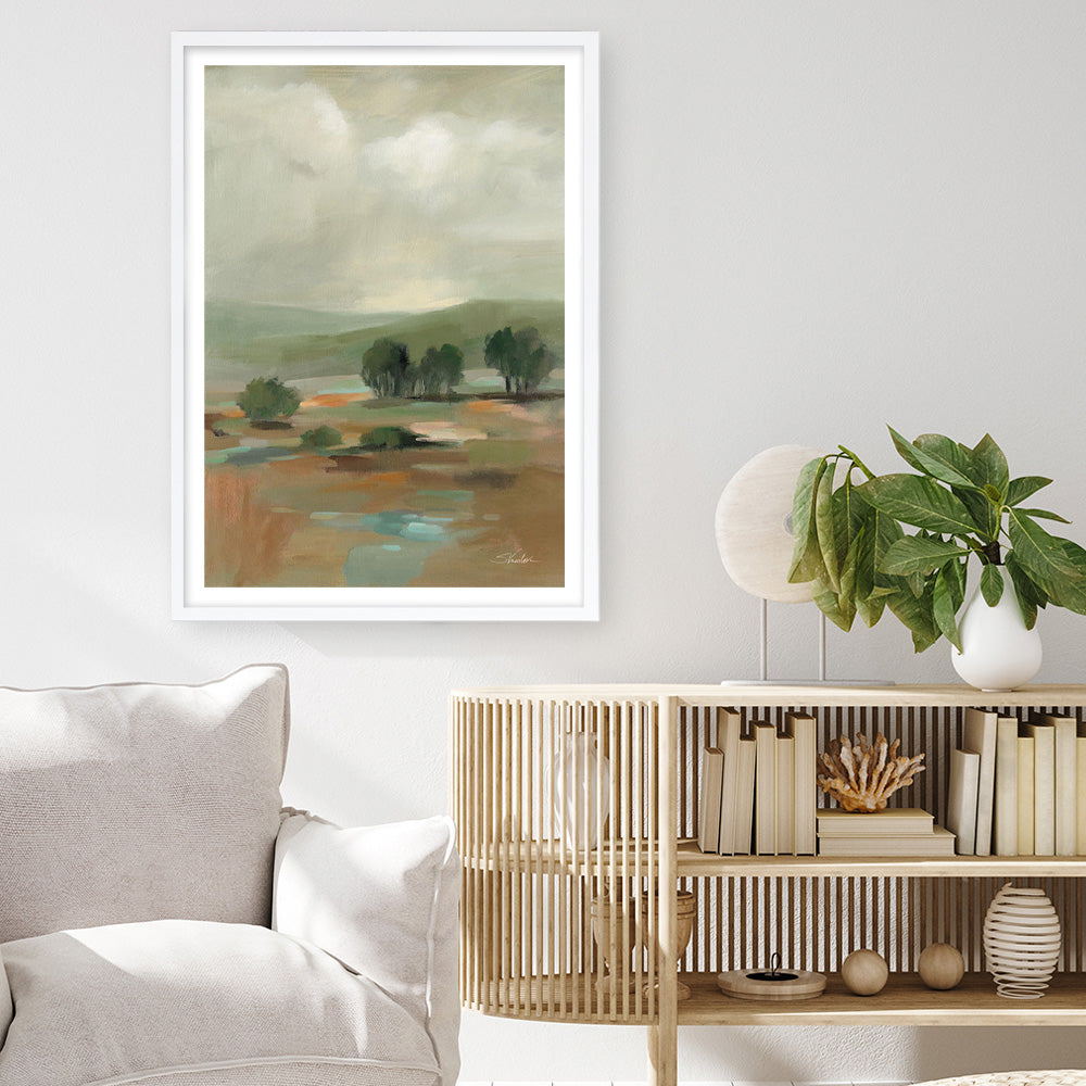 Shop Sage Hills Art Print by Silvia Vassileva and update your wall decor at home easily with this colourful abstract painting of a meadow from our hand painted print collection.