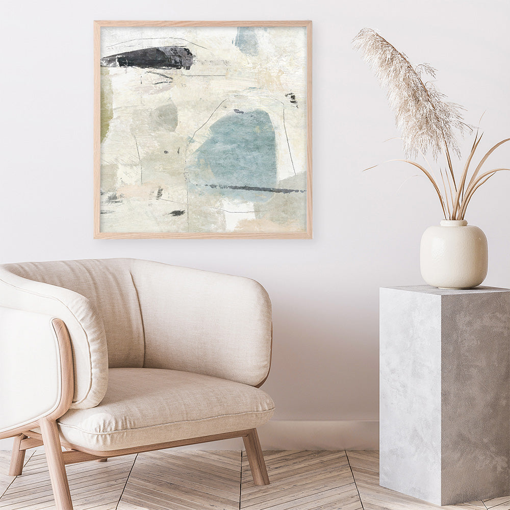 Shop Salento 2 (Square) Art Print by Suzanne Nicoll and update your wall decor at home easily with this soft blue and white abstract square artwork from our hand painted print collection.