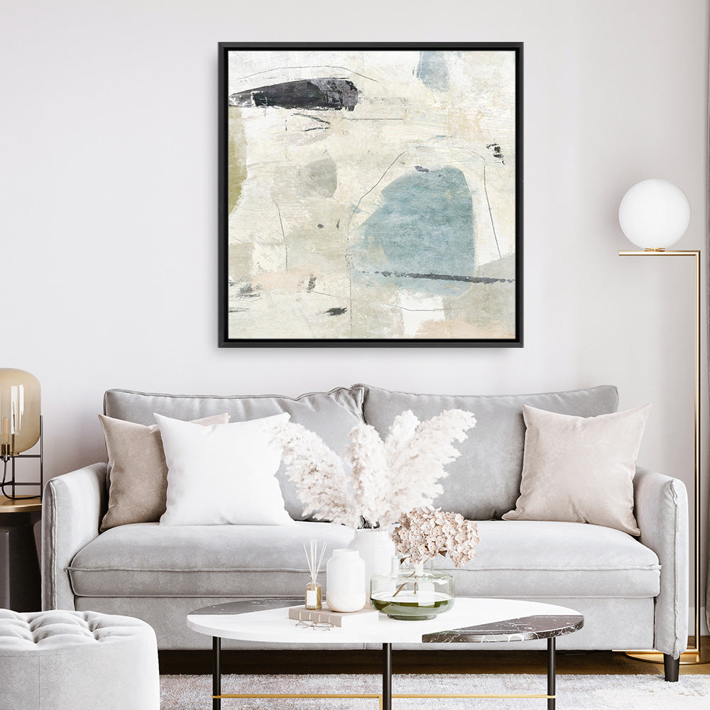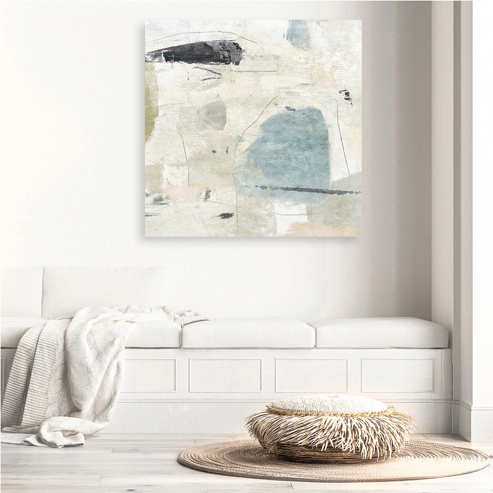 Shop Salento 2 (Square) Canvas Print by Suzanne Nicoll and update your wall decor at home easily with this soft blue and white abstract square artwork from our hand painted canvas print collection.