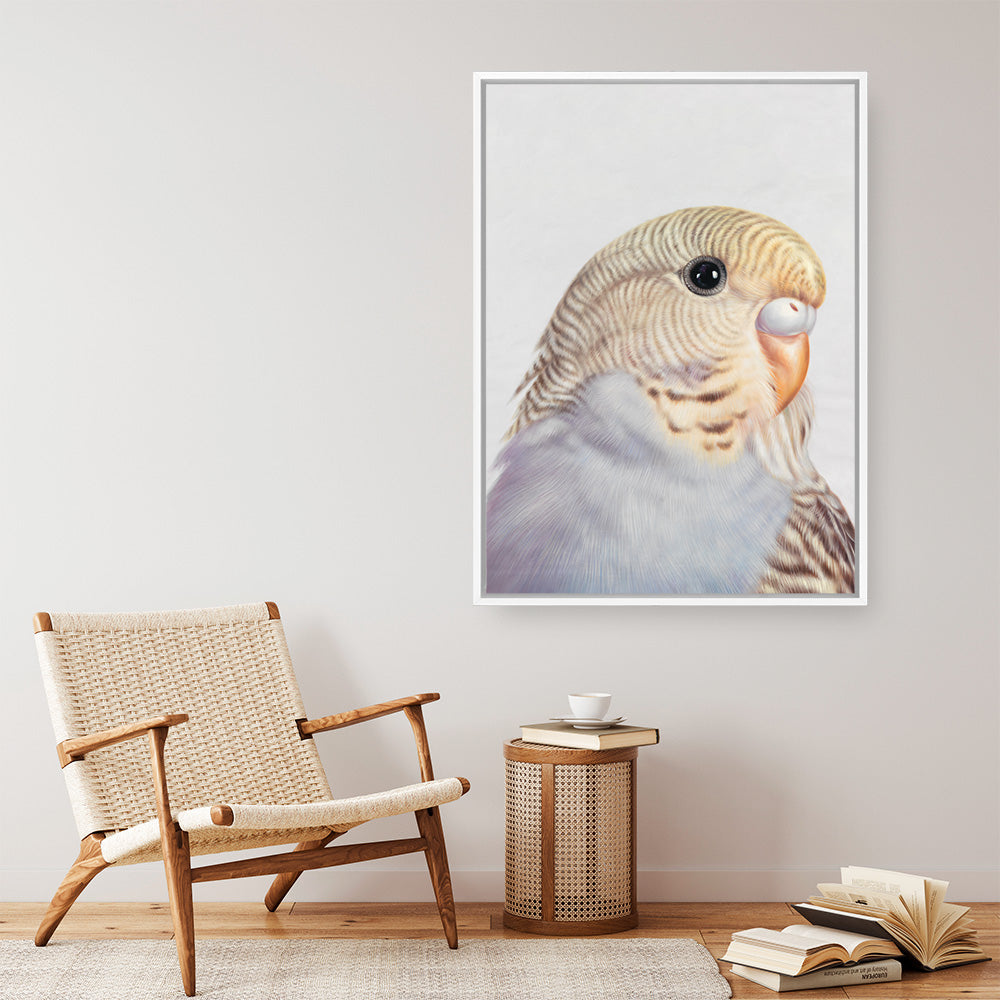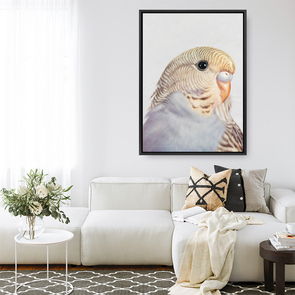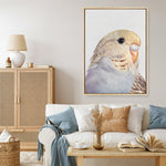 Shop Sammy The Budgerigar Canvas Print by The Print Emporium. This canvas wall art print from our hand painted aesthetic print collection, was originally hand painted by us and is now available as a reproduction printed stretched and ready-to-hang canvas artwork.