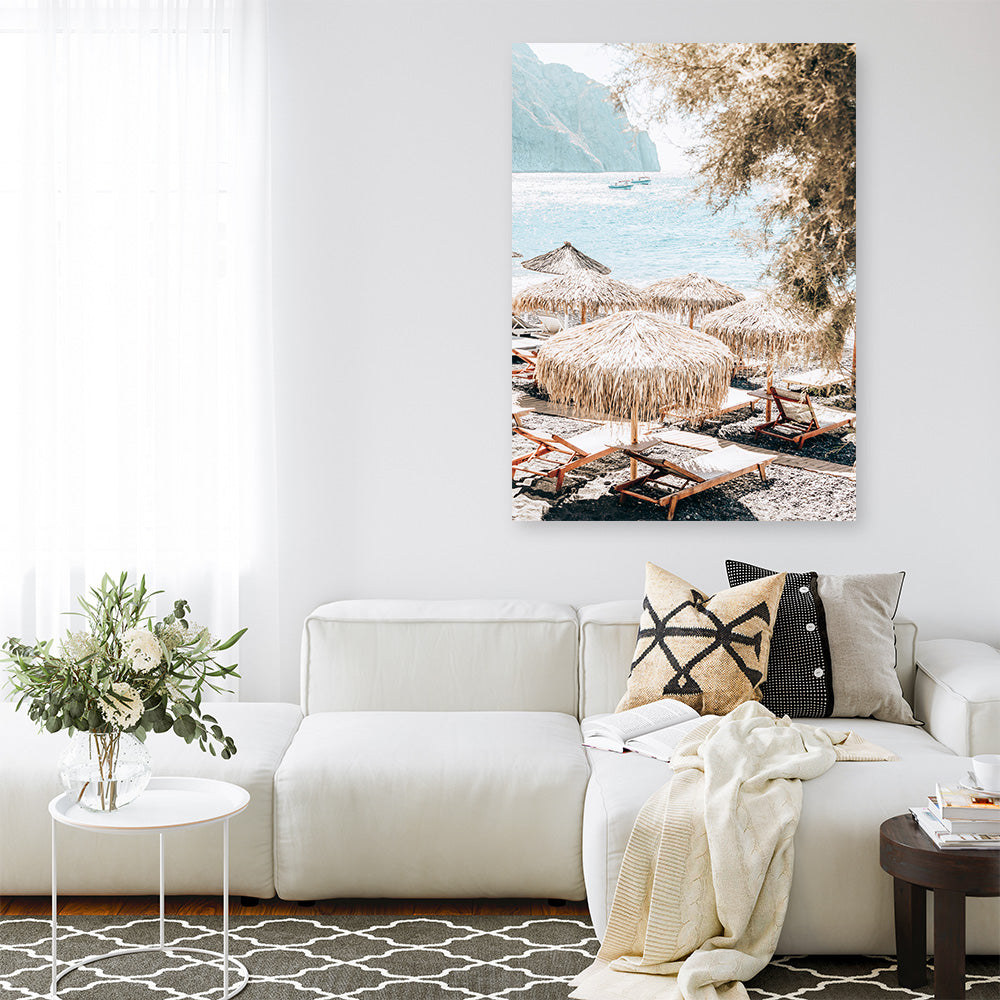 Shop Santorini Beach Parasols Photo Canvas Wall Art Print by The Print Emporium