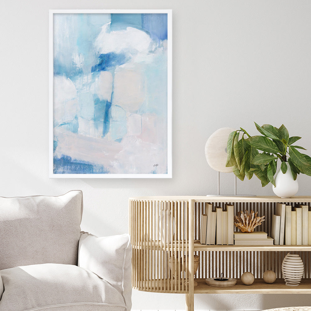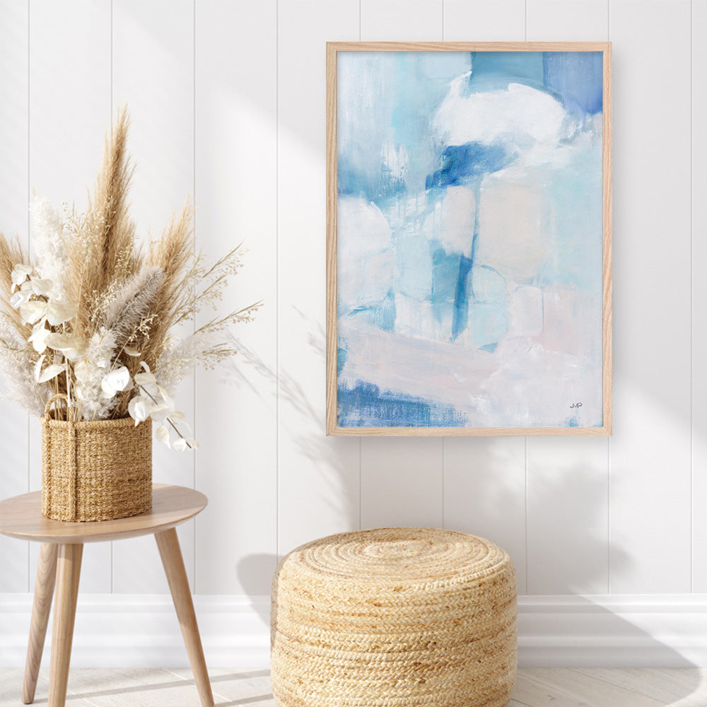 Shop Sea Glass I Art Print by Julia Purinton and update your wall decor at home easily with this vibrant blue coastal artwork from our abstract hand painted print collection.
