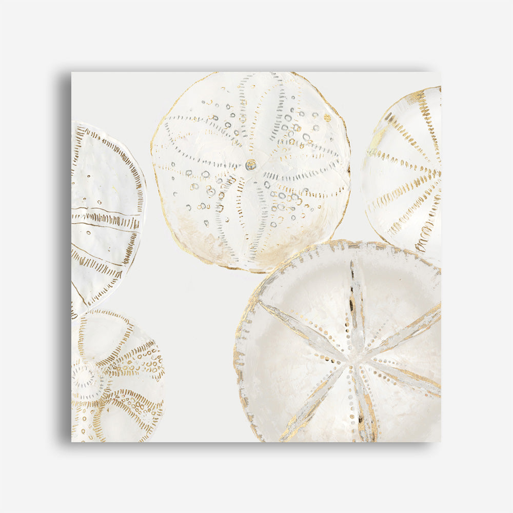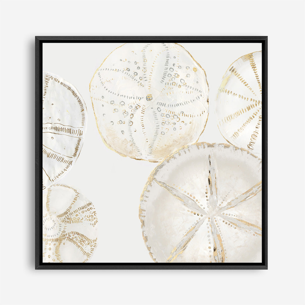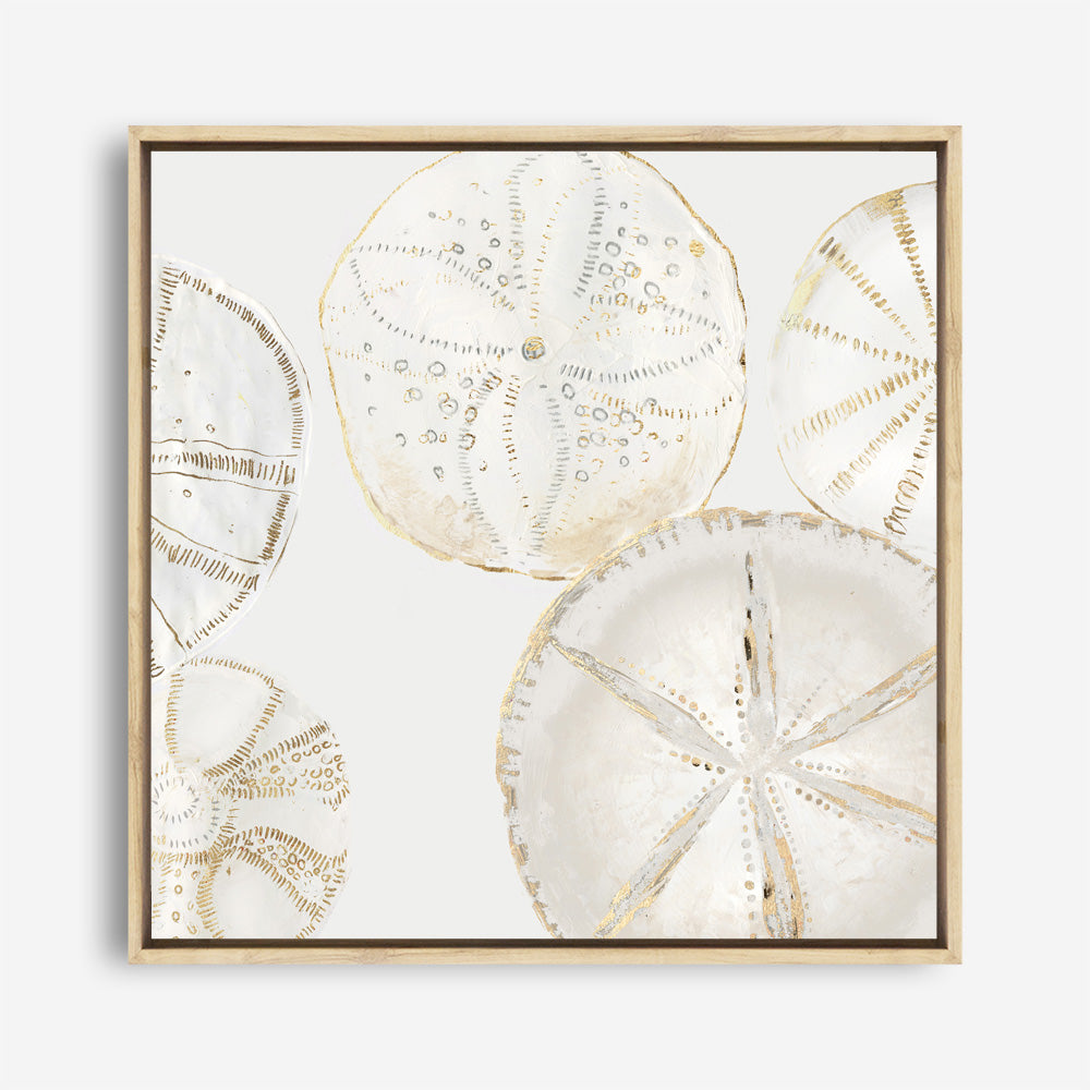 Shop Sea Patterns I (Square) Canvas Wall Art Print by Aimee Wilson and update your wall decor at home easily with this beige toned shell themed style framed canvas artwork piece from our hand painted prints collection.