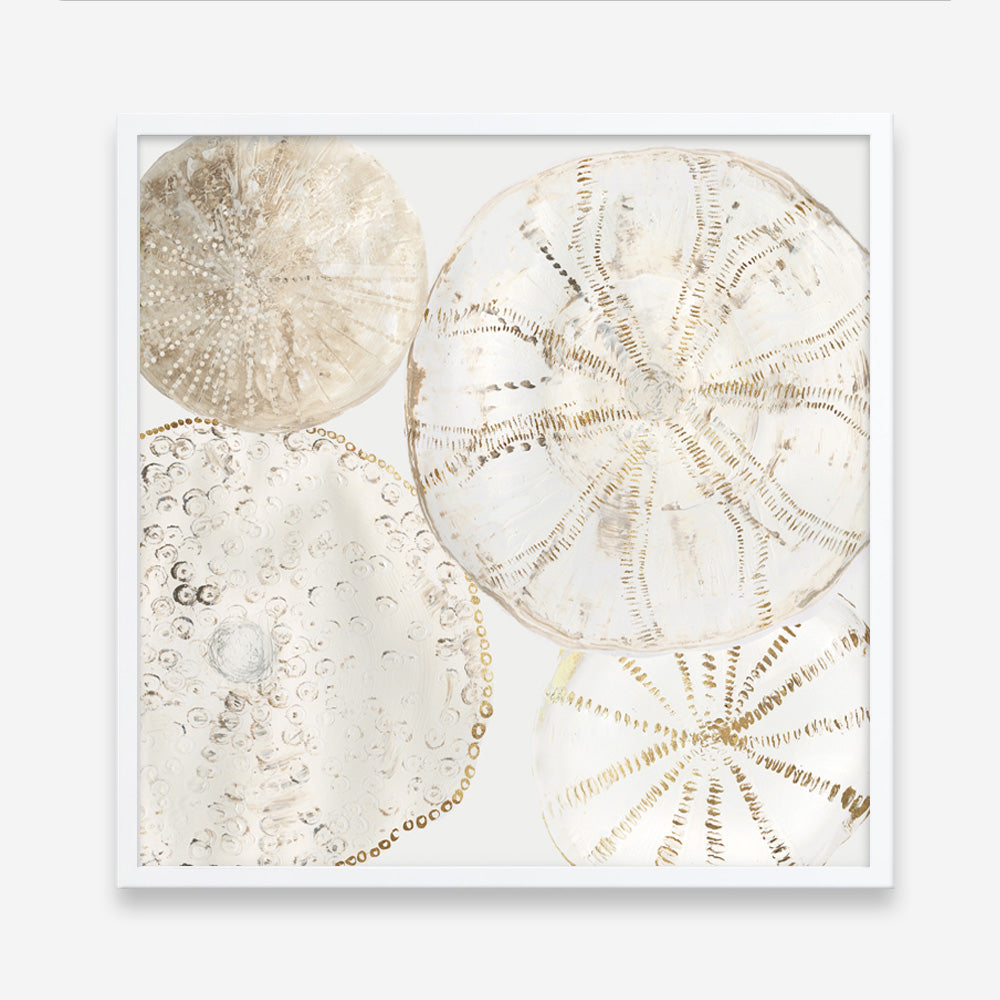 Shop Sea Patterns II (Square) Wall Art Print by Aimee Wilson and update your wall decor at home easily with this geometric beige toned abstract themed wall artwork print from our hand painted prints collection.