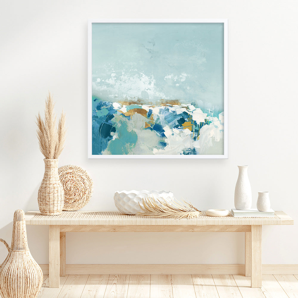 Shop Sea Pebbles (Square) Wall Art Print by Grace Rowan and update your wall decor at home easily with this turquoise abstract themed wall artwork print from our hand painted prints collection.
