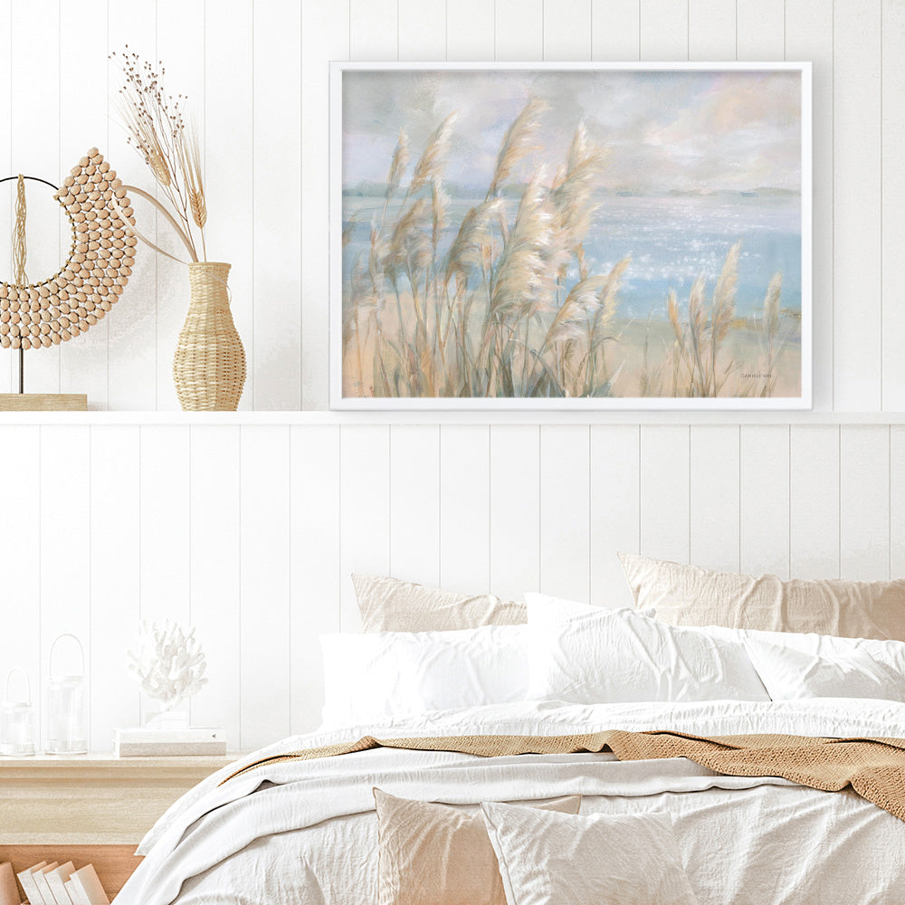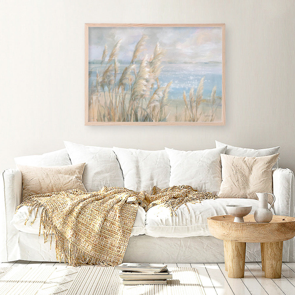 Shop Seaside Pampas Grass Art Print by Danhui Nai and update your wall decor at home easily with this watercolour painted coastal grass artwork from our abstract hand painted print collection.