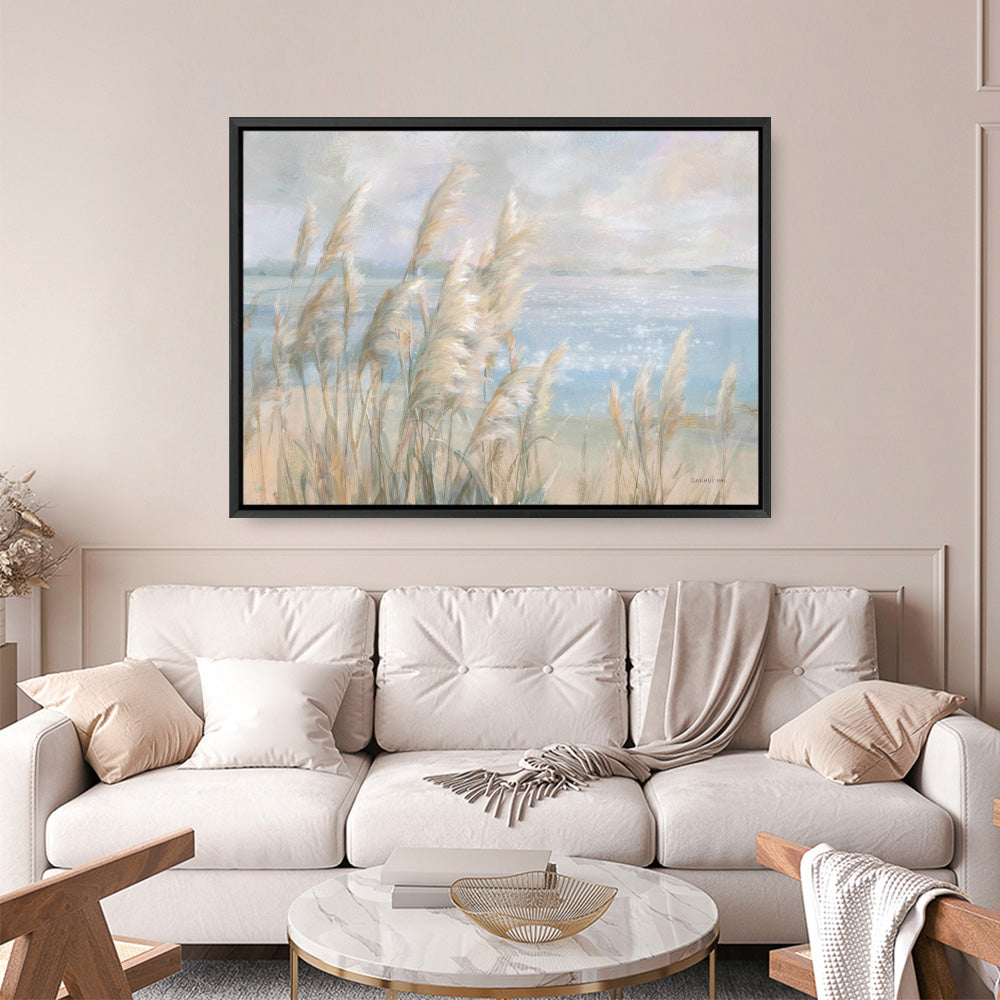 Shop Seaside Pampas Grass Canvas Print by Danhui Nai and update your wall decor at home easily with this watercolour painted coastal grass artwork from our abstract hand painted print collection .