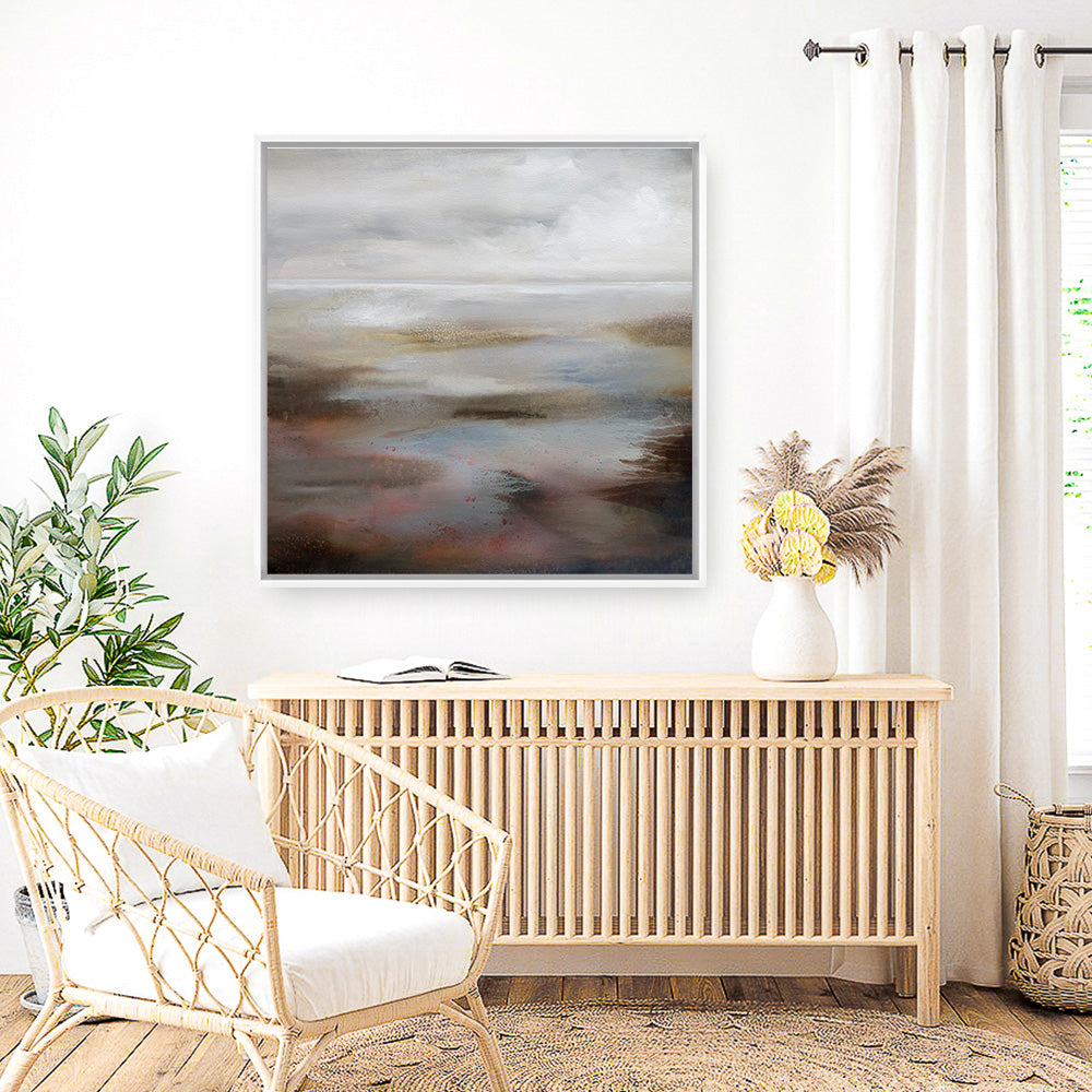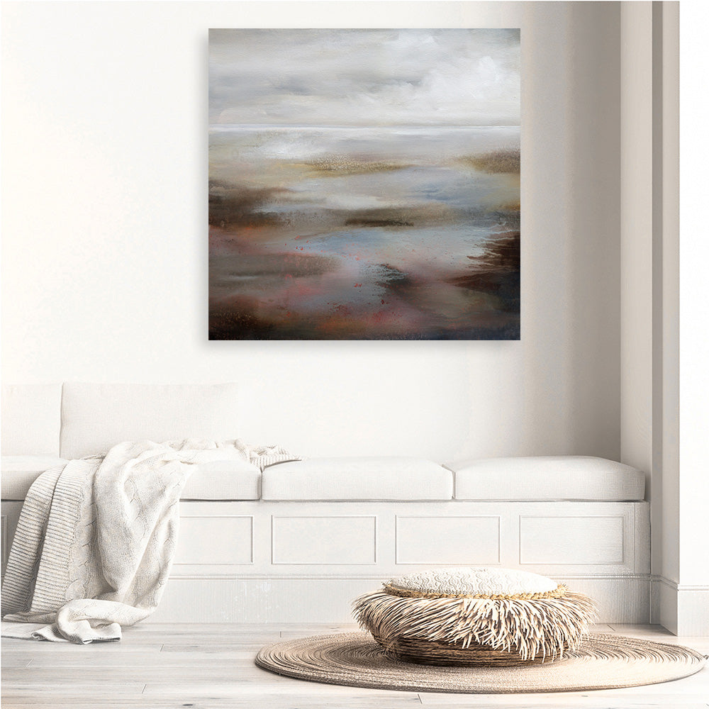 Shop Serene Image (Square) Canvas Print by Karen Hale and update your wall decor at home easily with this gloomy coastal view square artwork from our hand painted canvas print collection.