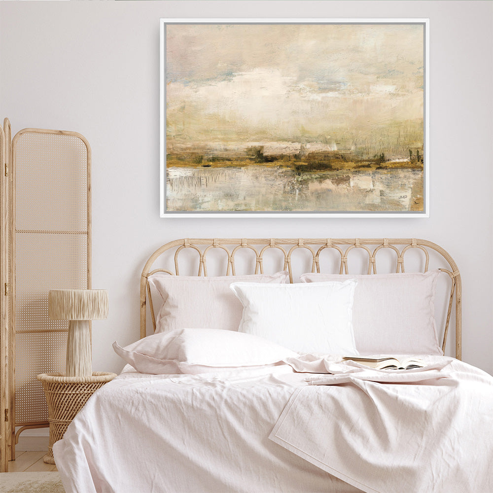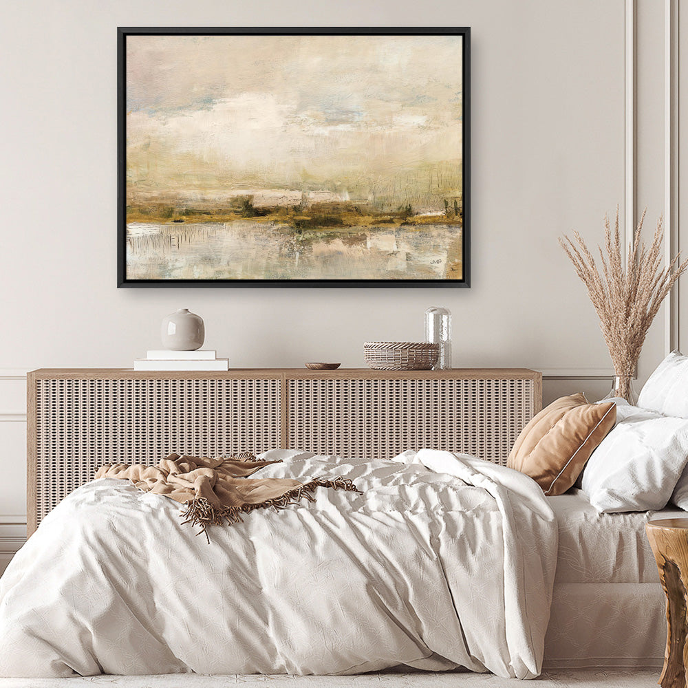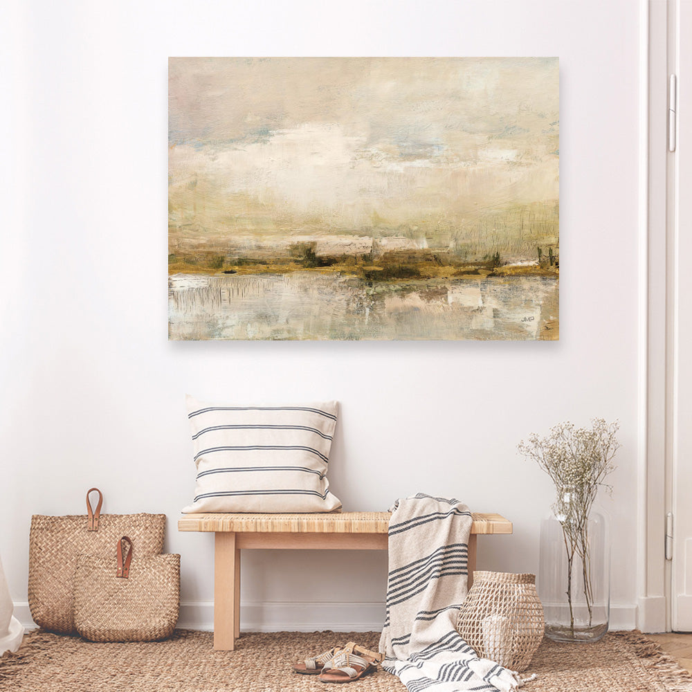 Shop Shimmering Earth Canvas Print by Julia Purinton and update your wall decor at home easily with this golden horizon abstract artwork from our hand painted print collection.