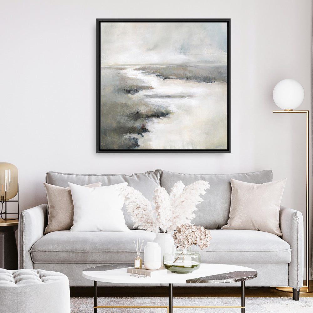 Shop Silent Poetry (Square) Canvas Print by Karen Hale and update your wall decor at home easily with this gloomy coastal view square artwork from our hand painted canvas print collection.