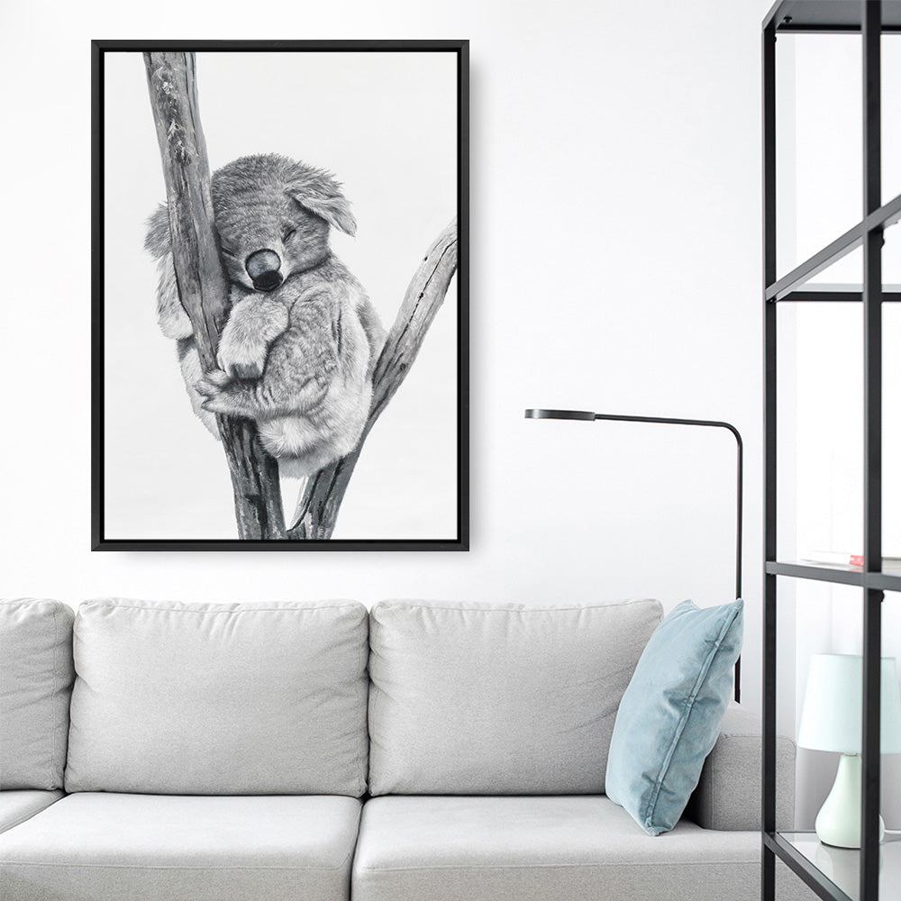Shop Sleeping Koala Canvas Print by The Print Emporium. This canvas wall art print from our hand painted aesthetic print collection, was originally hand painted by us and is now available as a reproduction printed stretched and ready-to-hang canvas artwork.