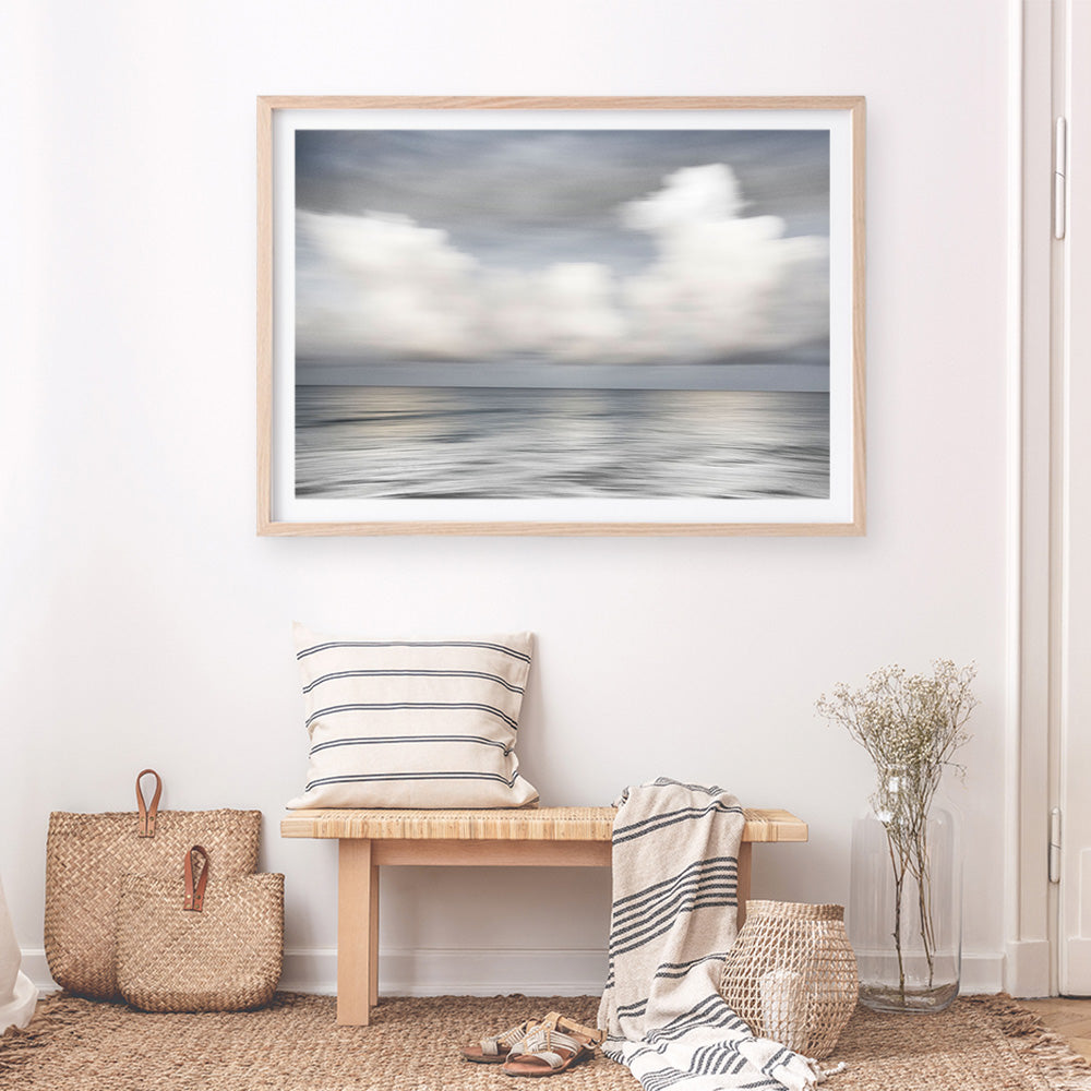Shop Soft Silence Art Print by Karin Connolly and update your wall decor at home easily with this cloudy sea view artwork from our hand painted print collection.