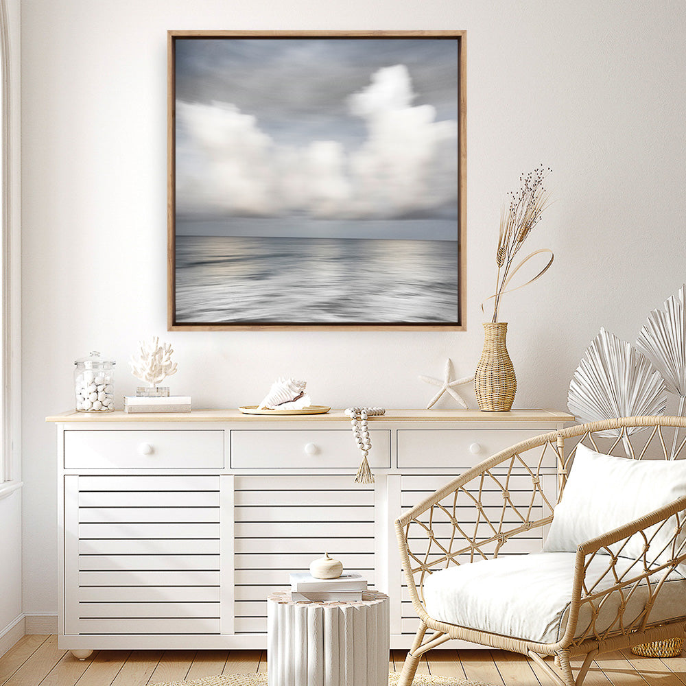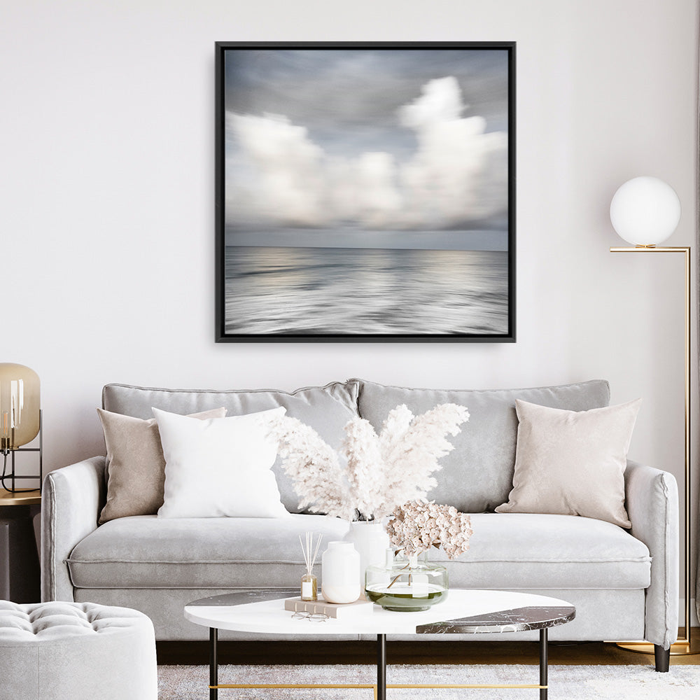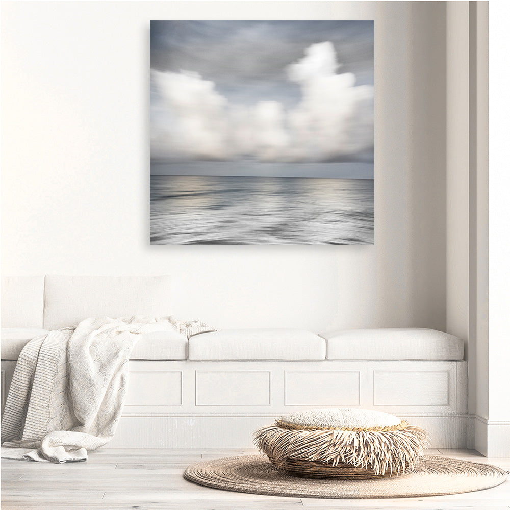 Shop Soft Silence (Square) Canvas Print by Karin Connolly and update your wall decor at home easily with this cloudy sea view square artwork from our hand painted canvas print collection.