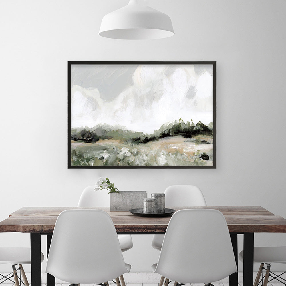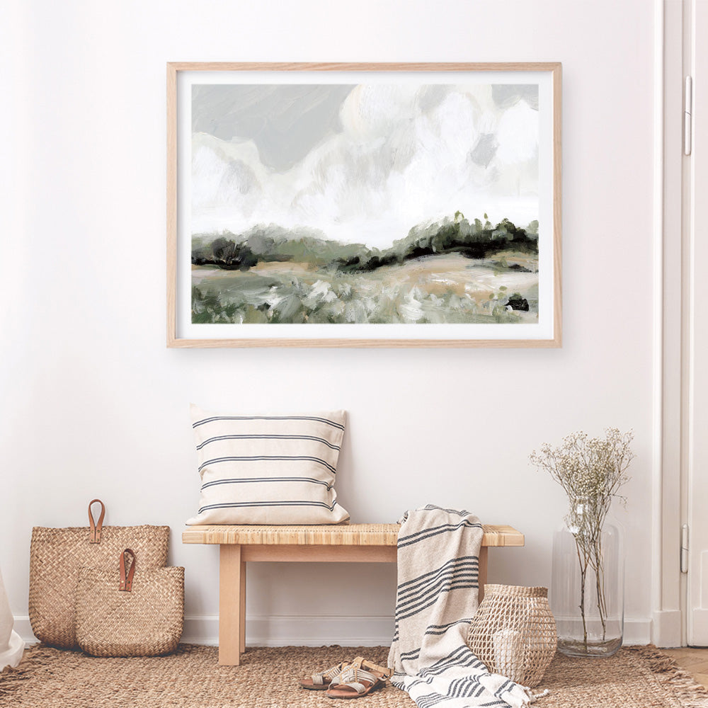 Shop Soft Summer Sky Neutral Art Print by Katrina Pete and update your wall decor at home easily with this grassland landscapes themed from our abstract hand painted print collection.