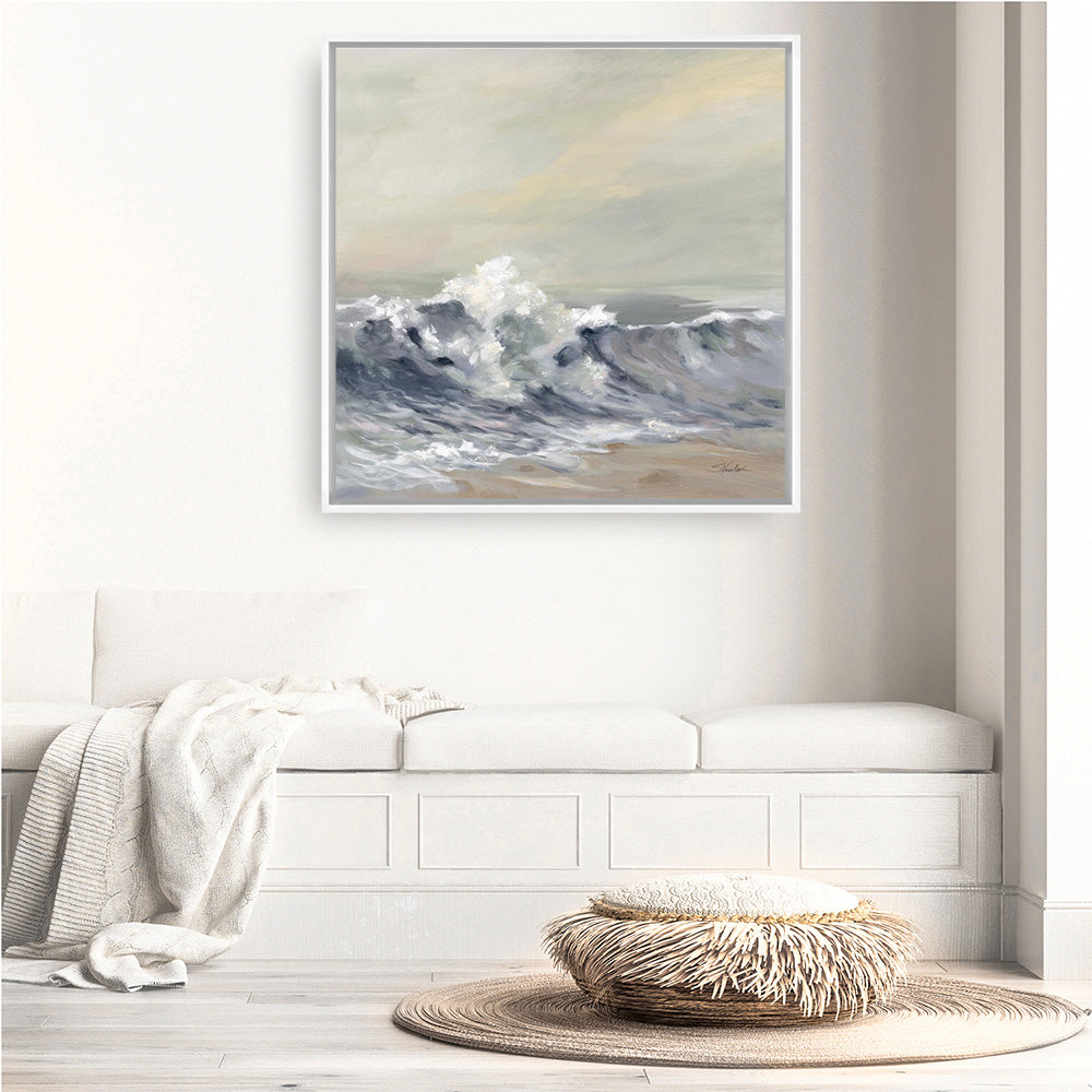 Shop Splashing Wave (Square) Canvas Wall Art Print by Silvia Vassileva and update your wall decor at home easily with this coastal splashing waves stretched framed artwork from our hand painted canvas print collection.