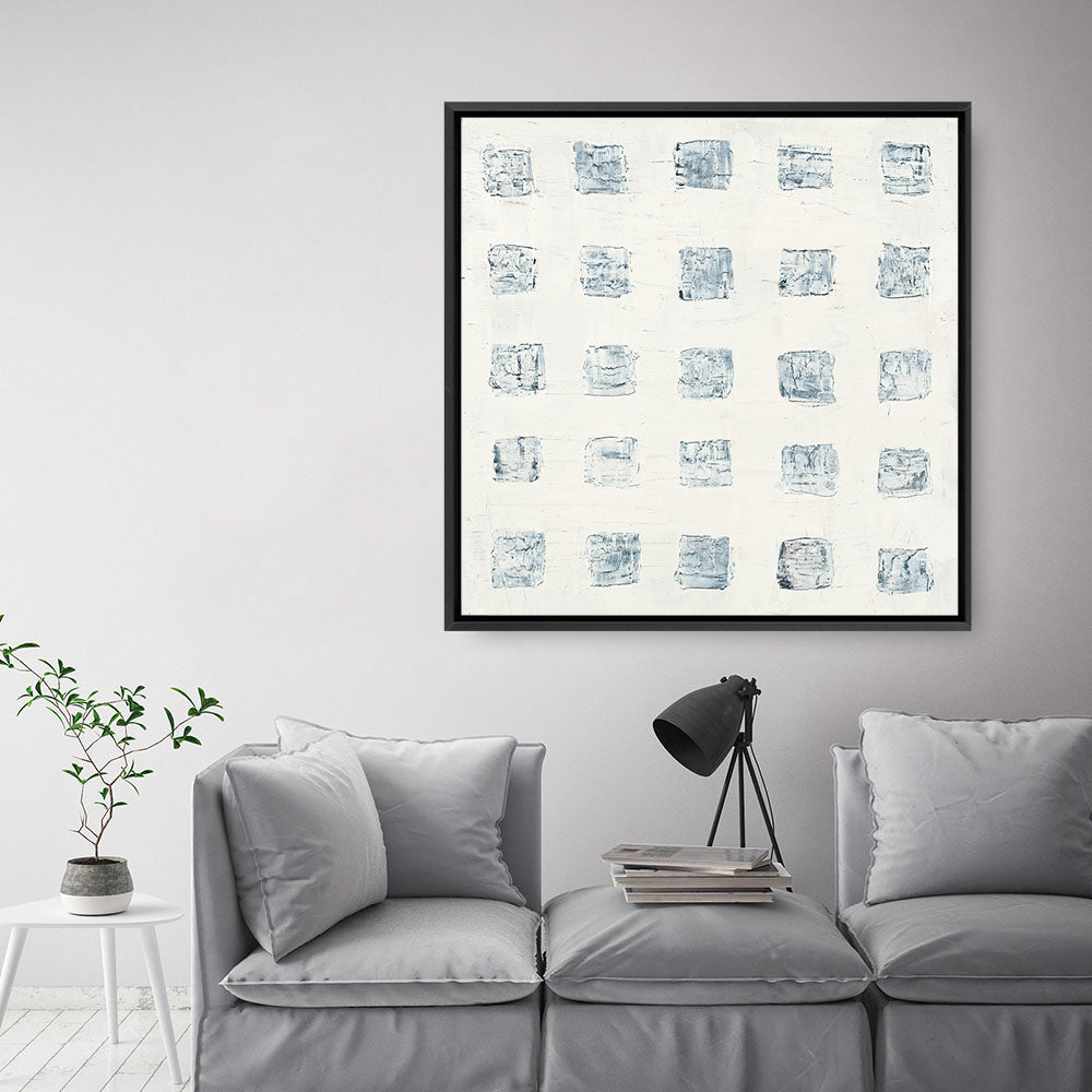 Shop Squares on White (Square) Canvas Wall Art Print and update your wall decor at home easily with this blue toned abstract themed stretched framed artwork from our hand painted canvas print collection.