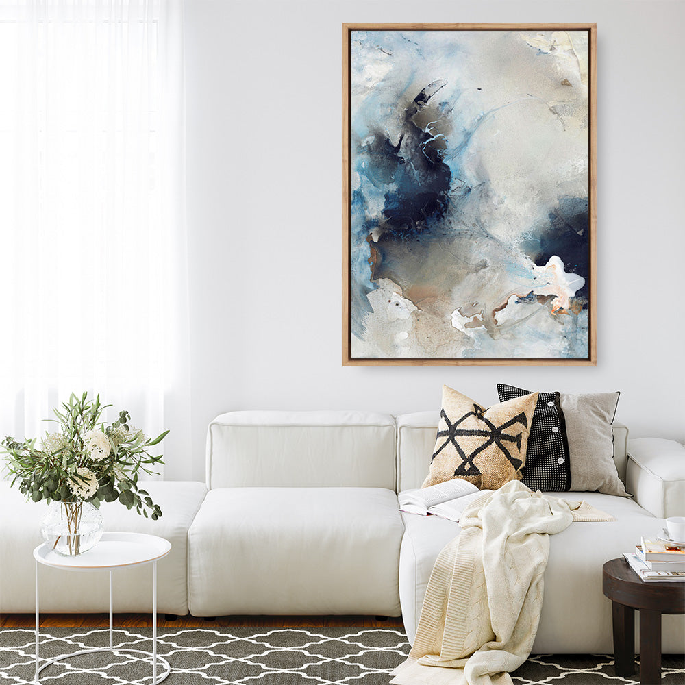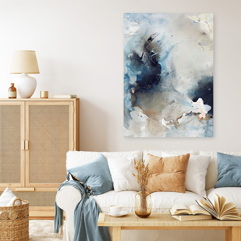 Shop Still Water 5 Canvas Print by Design Fabrikken and update your wall decor at home easily with this splash of blue and cream abstract artwork from our hand painted canvas print collection.