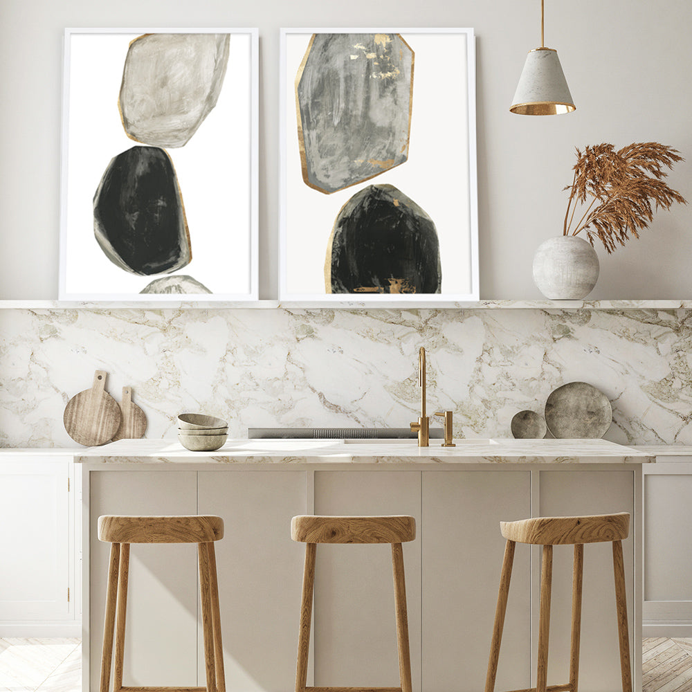 Shop Stones II Wall Art Print by Tom Reeves and update your wall decor at home easily with this black and grey toned abstract themed style artwork from our hand-painted wall art prints collection. Available framed or as a fine art unframed print.