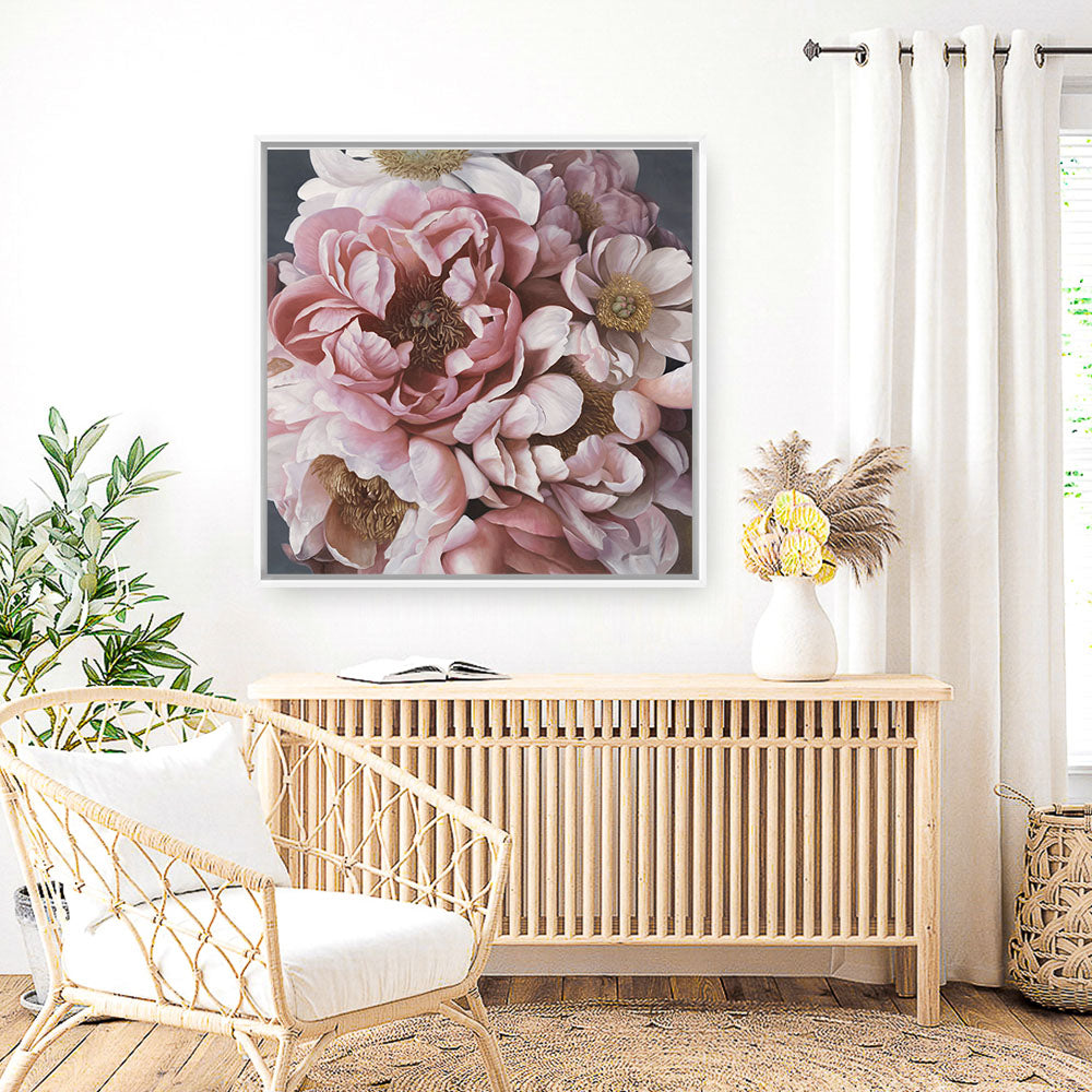 This square canvas print from our Premium print collection, was originally hand painted by us and is now available as a reproduction printed stretched and ready-to-hang canvas artwork. If you look up close you can see the original and incredible brush stroke detailing from our artist's brush.