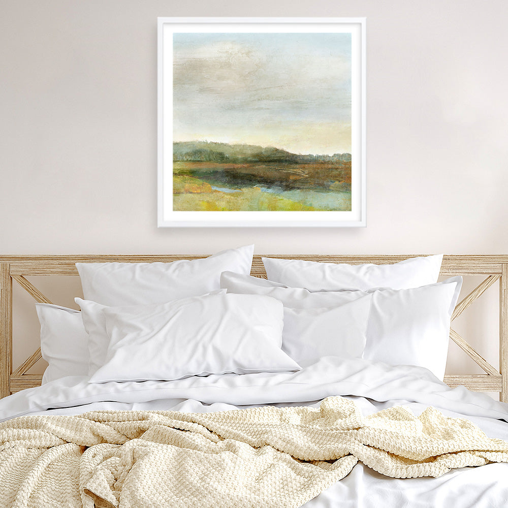 Shop Summer Marsh (Square) Art Print by Suzanne Nicoll and update your wall decor at home easily with this serene beauty of summer captured in a stunning square artwork from our hand painted print collection.