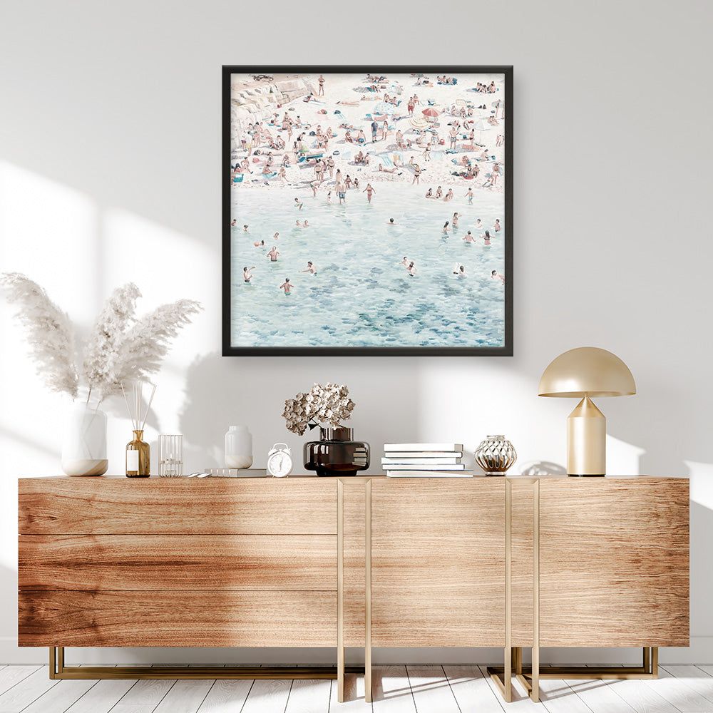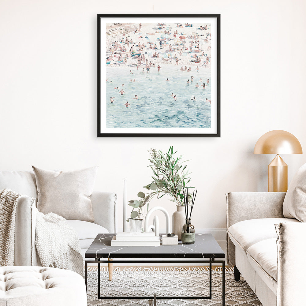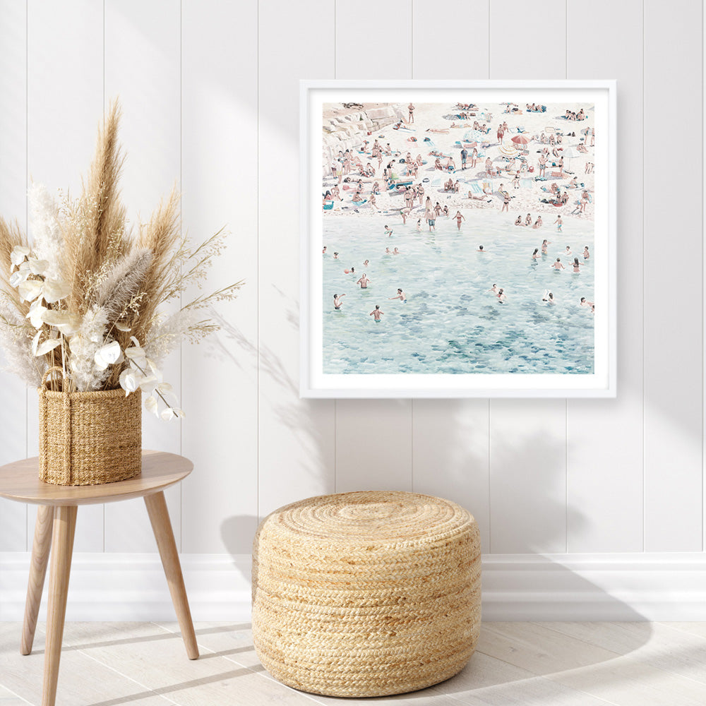 Shop Summer Scene (Square) Art Print by The Print Emporium and update your wall decor at home easily with this coastal beach painted artwork print from our collection.