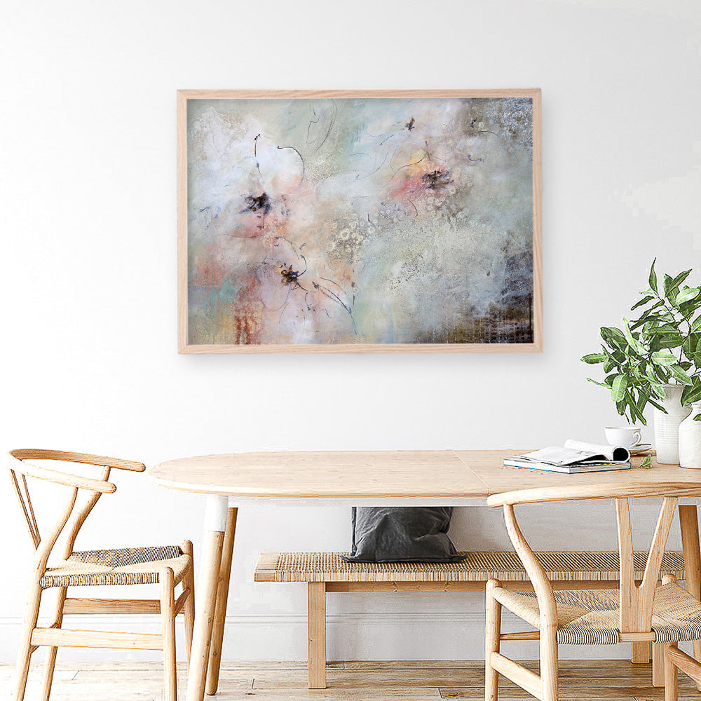 Shop Through The Haze Art Print by Karen Hale and update your wall decor at home easily with this colourful abstract artwork from our hand painted print collection.