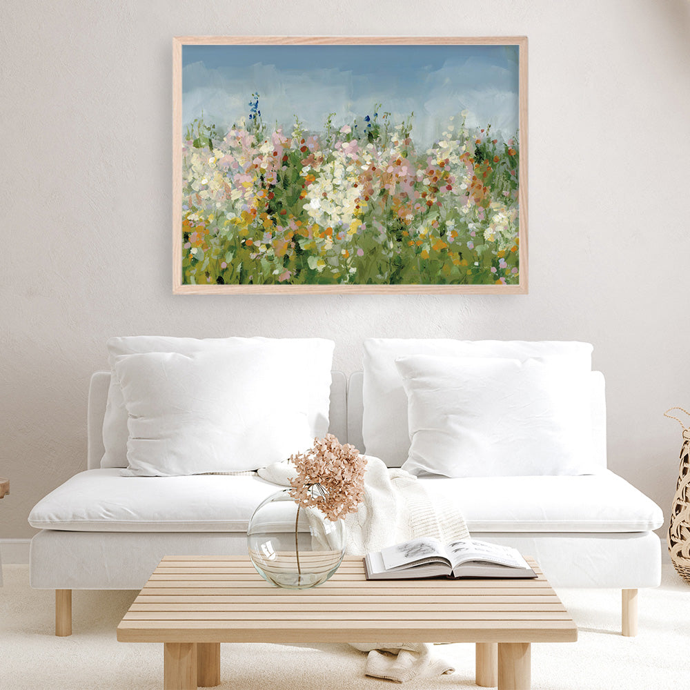 Shop Tranquil Field Art Print by Danhui Naiand update your wall decor at home easily with this beautiful meadow of wildflowers artwork from our abstract hand painted print collection.
