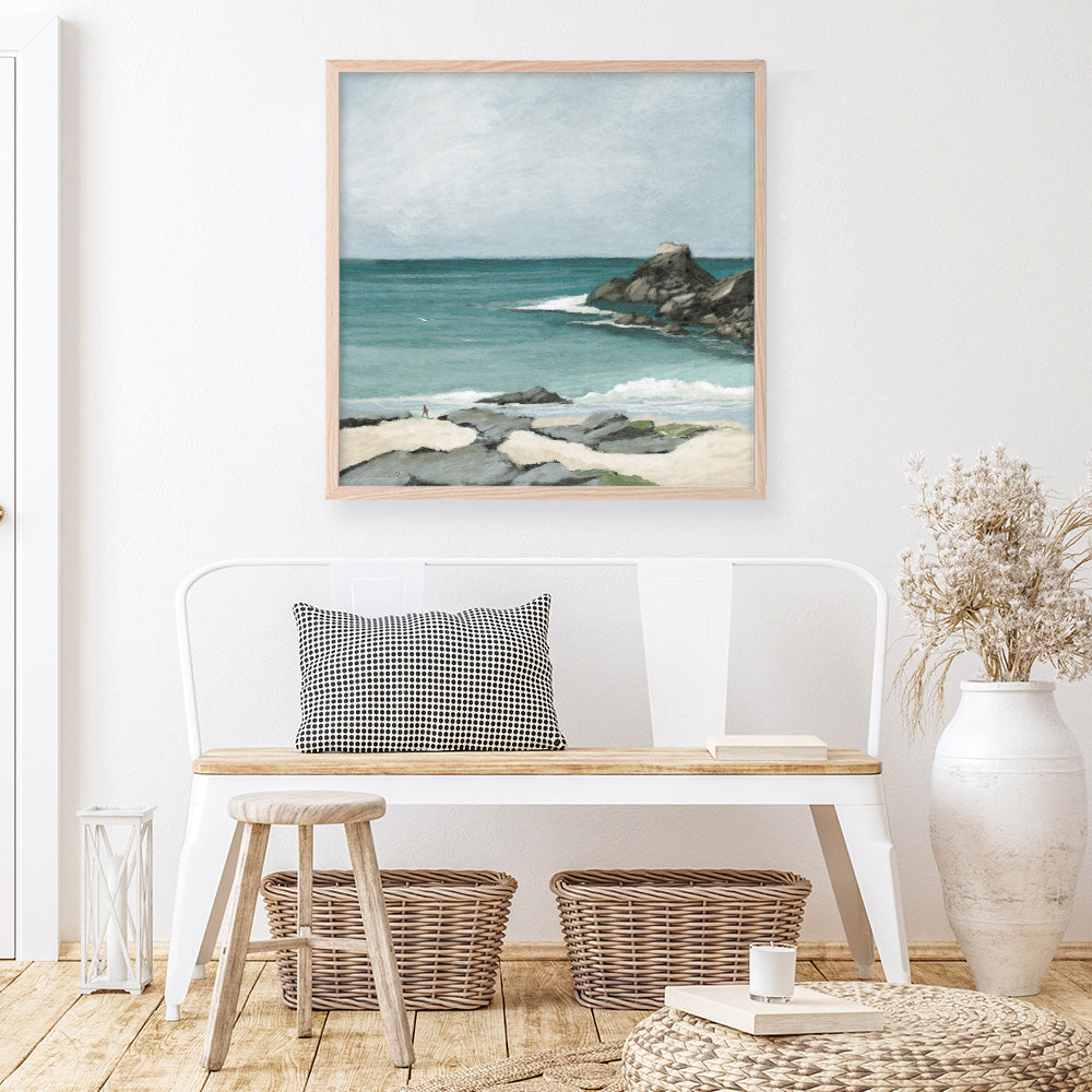 Shop Trevone Bay(Square) Art Print and update your wall decor at home easily with this coastal themed abstract artwork print from our hand painted print collection by United Kingdom based artist Dan Hobday, now available on The Print Emporium. Dan creates artwork using a mixture of mediums including acrylic paints, inks, digital and also mixed media. All original artworks were designed and hand created by Dan and then digitised, and now available to purchase as reprints on paper or canvas and with framing options available.