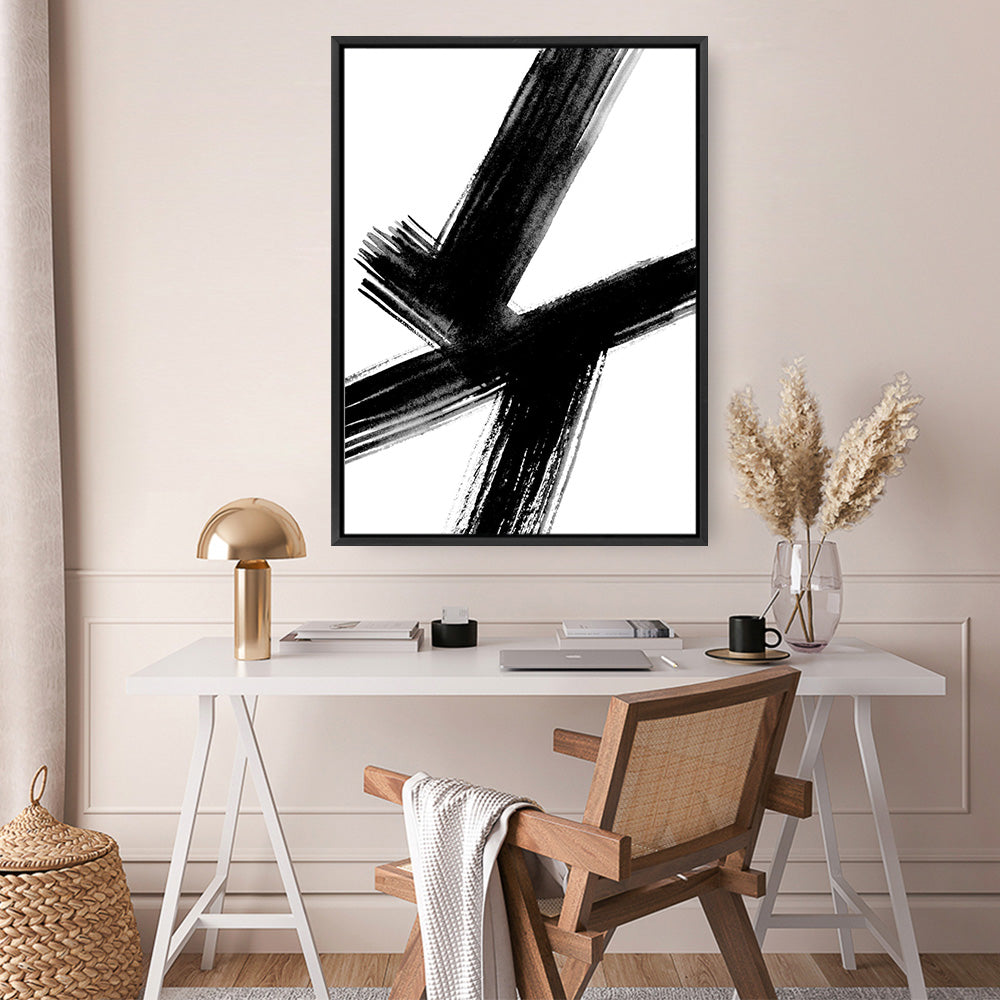 Shop Urban 1 Canvas Print by Lesia Binkin and update your wall decor at home easily with this striking minimalist abstract art print, featuring bold black brushstrokes on a clean white background from our hand painted canvas print collection.