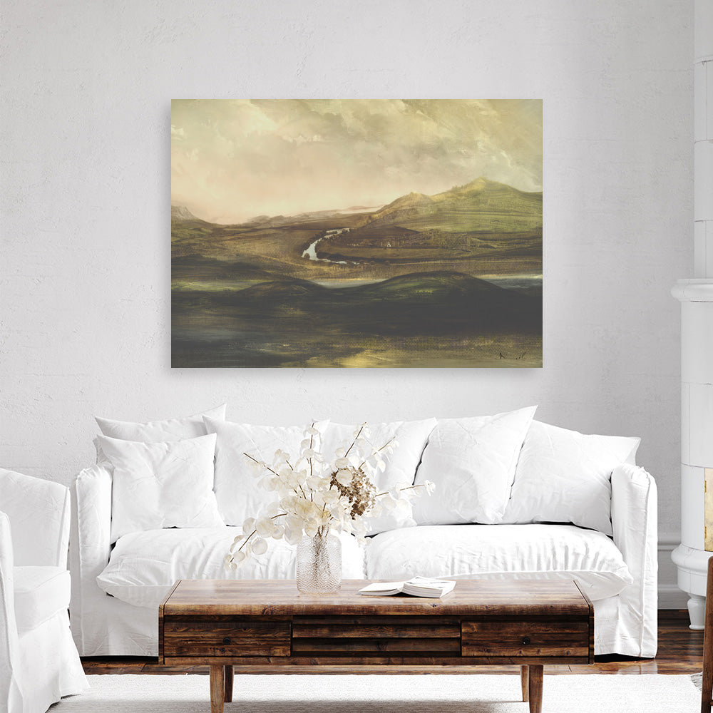 Shop Valley Vista Canvas Print and update your wall decor at home easily with this countryside landscapes stretched canvas wall art print from our hand painted print collection by United Kingdom based artist Dan Hobday, now available on The Print Emporium. Dan creates artwork using a mixture of mediums including acrylic paints, inks, digital and also mixed media. All original artworks were designed and hand created by Dan and then digitised, and now available to purchase as reprints on paper or canvas and with framing options available.