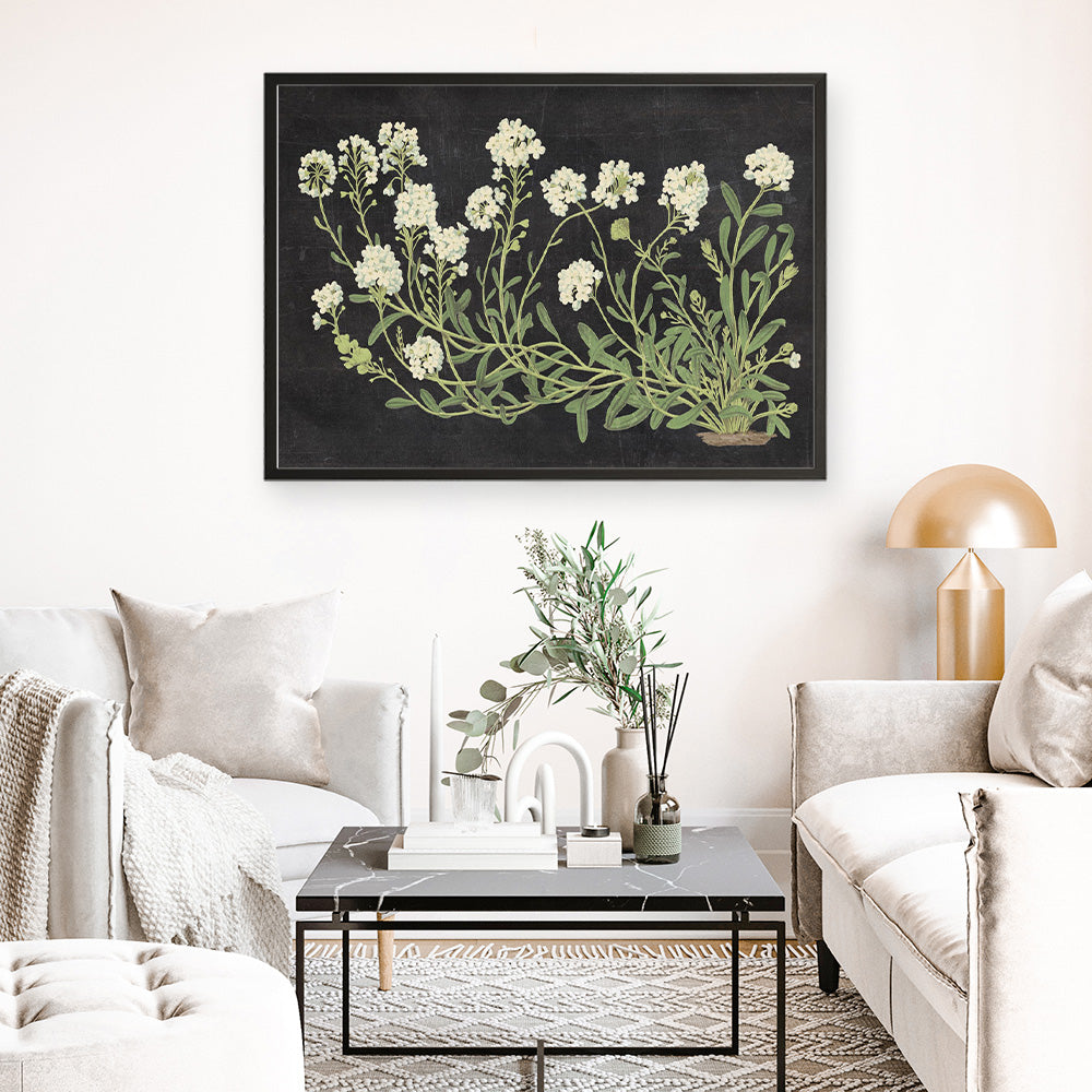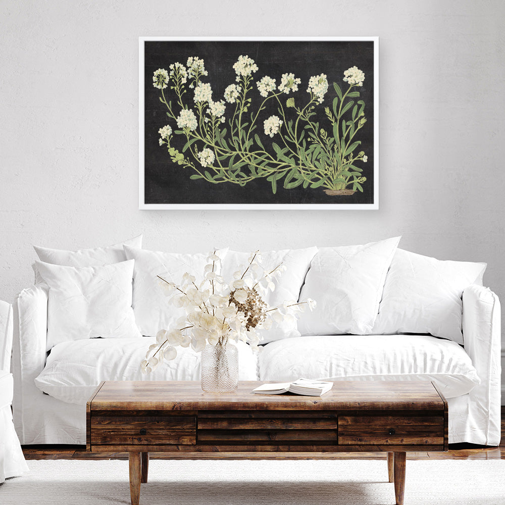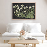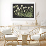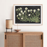 Shop Vintage Flowers on Black Art Print and update your wall decor at home easily with this bush of white vintage flowers from our abstract hand painted print collection.