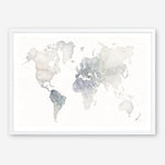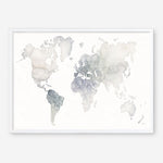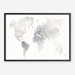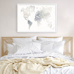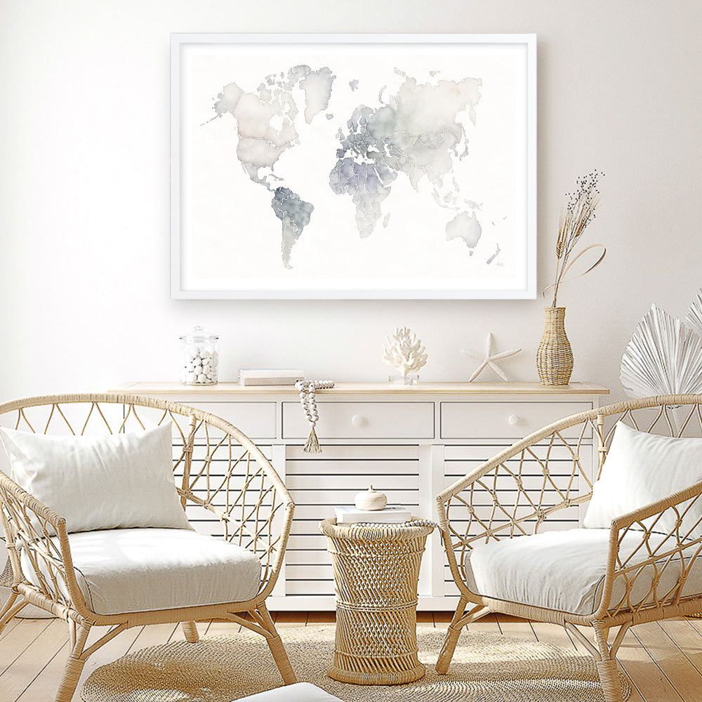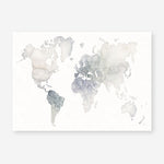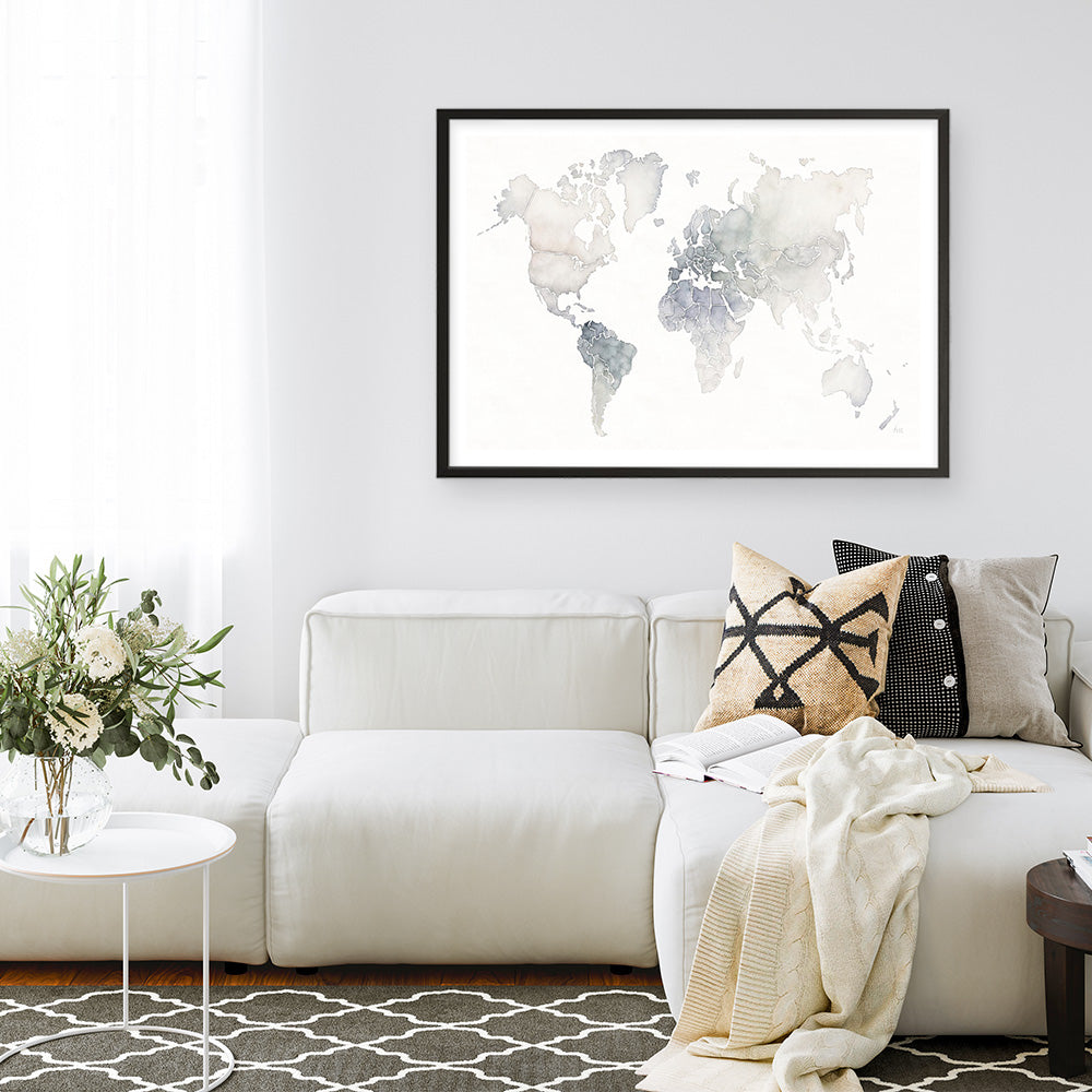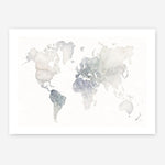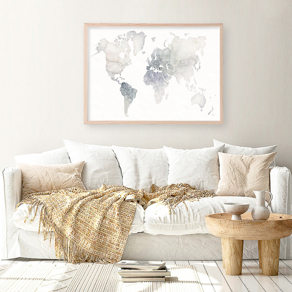 Shop Watercolor Wanderlust Art Print by Laura Marshall and update your wall decor at home easily with this grey coloured map of the world artwork from our abstract hand painted print collection.
